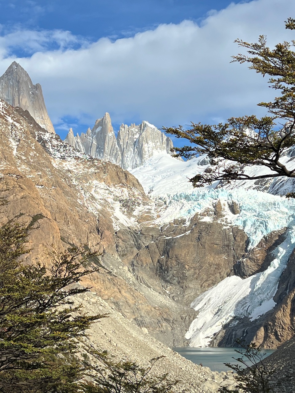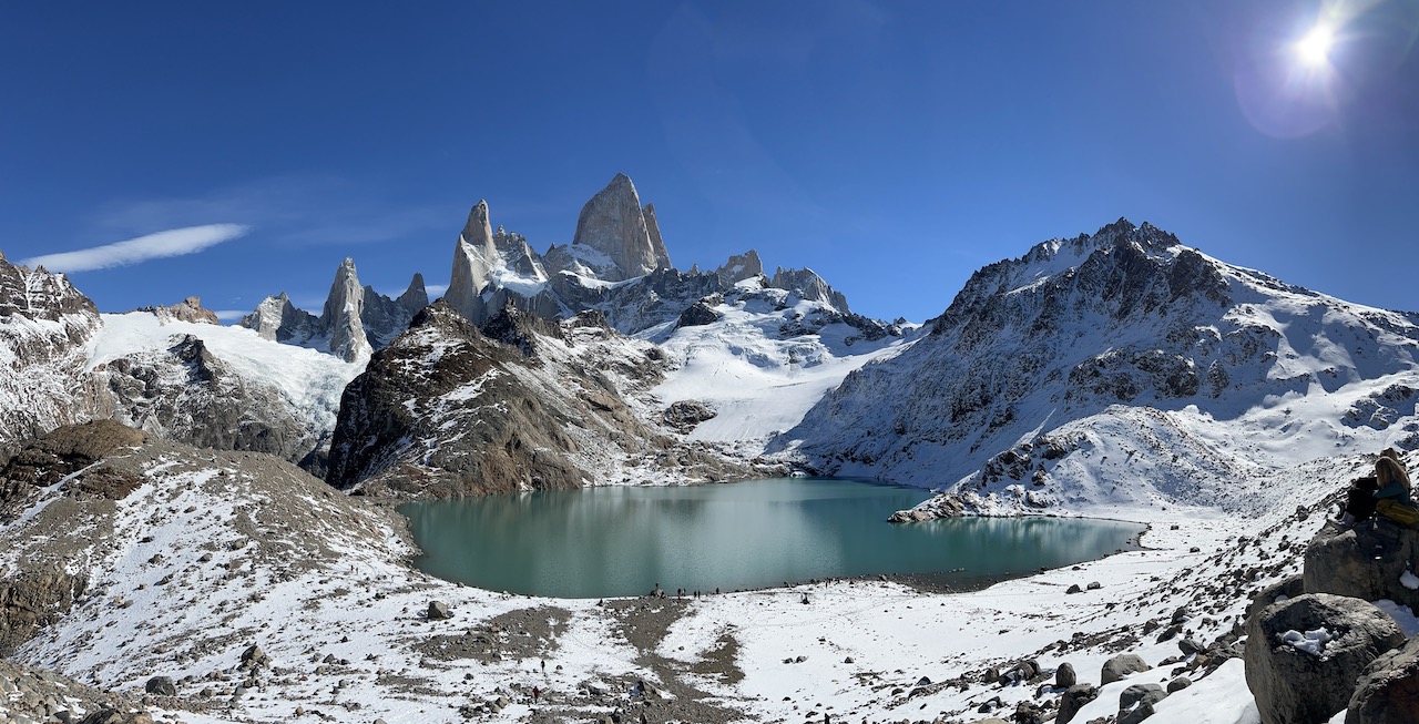 A subida de 2 km e 1.000 metros de inclinação é puxadíssima e a trilha muito acidentada, com muitas pedras, lama, neve e gelo. Mas o esforço é compensado com a chegada ao topo e a visão quase celestial da Laguna de Los Tres e seus picos extraordinários. Dentre eles, o maior e mais bonito de todos, o famoso Monte Fitz Roy. Uma experiência como poucas que já tive – simplesmente magnífica.
