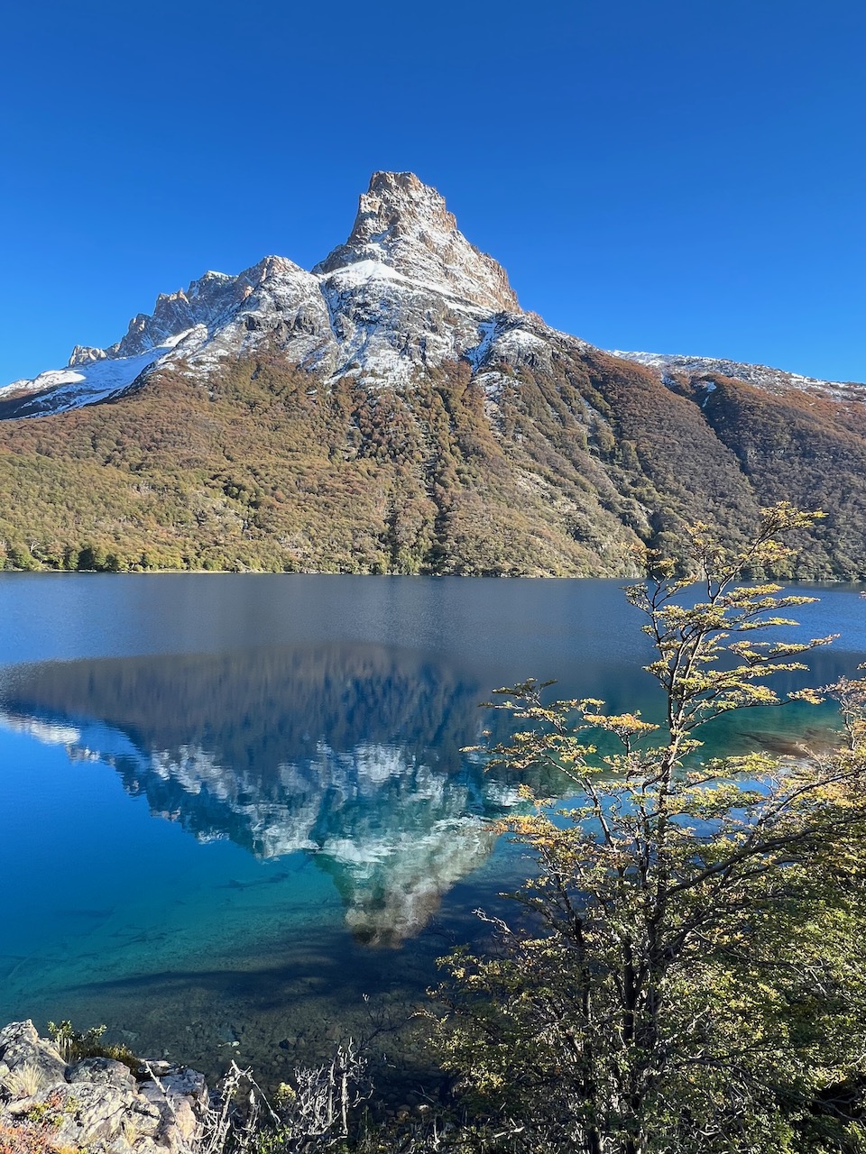 A última parada da expedição é a espetacular Laguna del Diablo, e o caminho até lá passa por uma trilha pela floresta e por um rio belíssimo. O cenário parece de mentira de tão encantador, com as montanhas espetaculares e seus picos cobertos de neve, o rio cinza esverdeado e as árvores já nas cores do outono. Um deslumbramento.