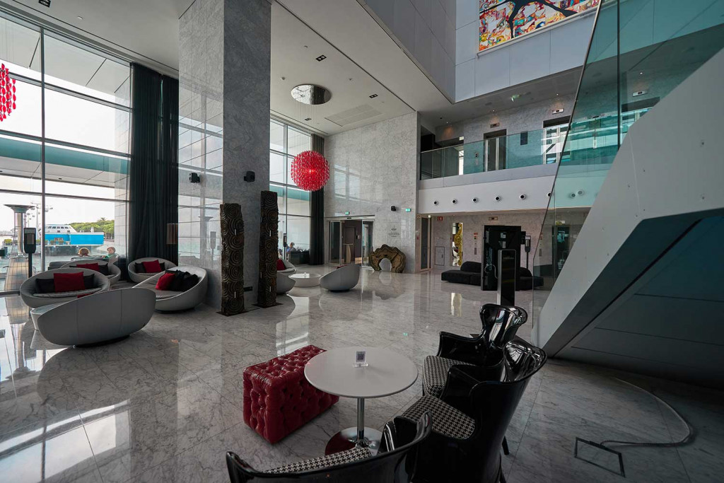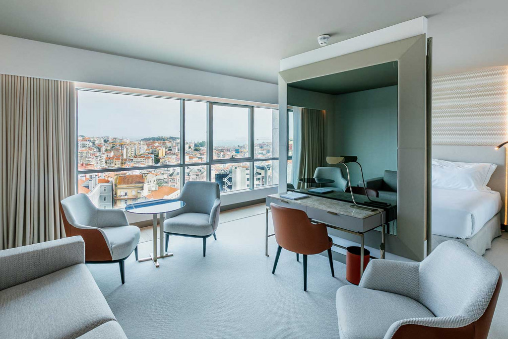 De volta a Lisboa, é hora de mudar de hotel e explorar outras regiões. Fomos ao Myriad, do grupo SANA, hotel cinco estrelas que fica do outro lado da cidade, perto do aquário, e que merece uma visita. Perto ali, além de uma vista privilegiada do Tejo, há um teleférico que faz passeios ida e volta até o aquário, onde há também teatro, o Jardim da Água, bares, restaurantes e muitas lojinhas.
