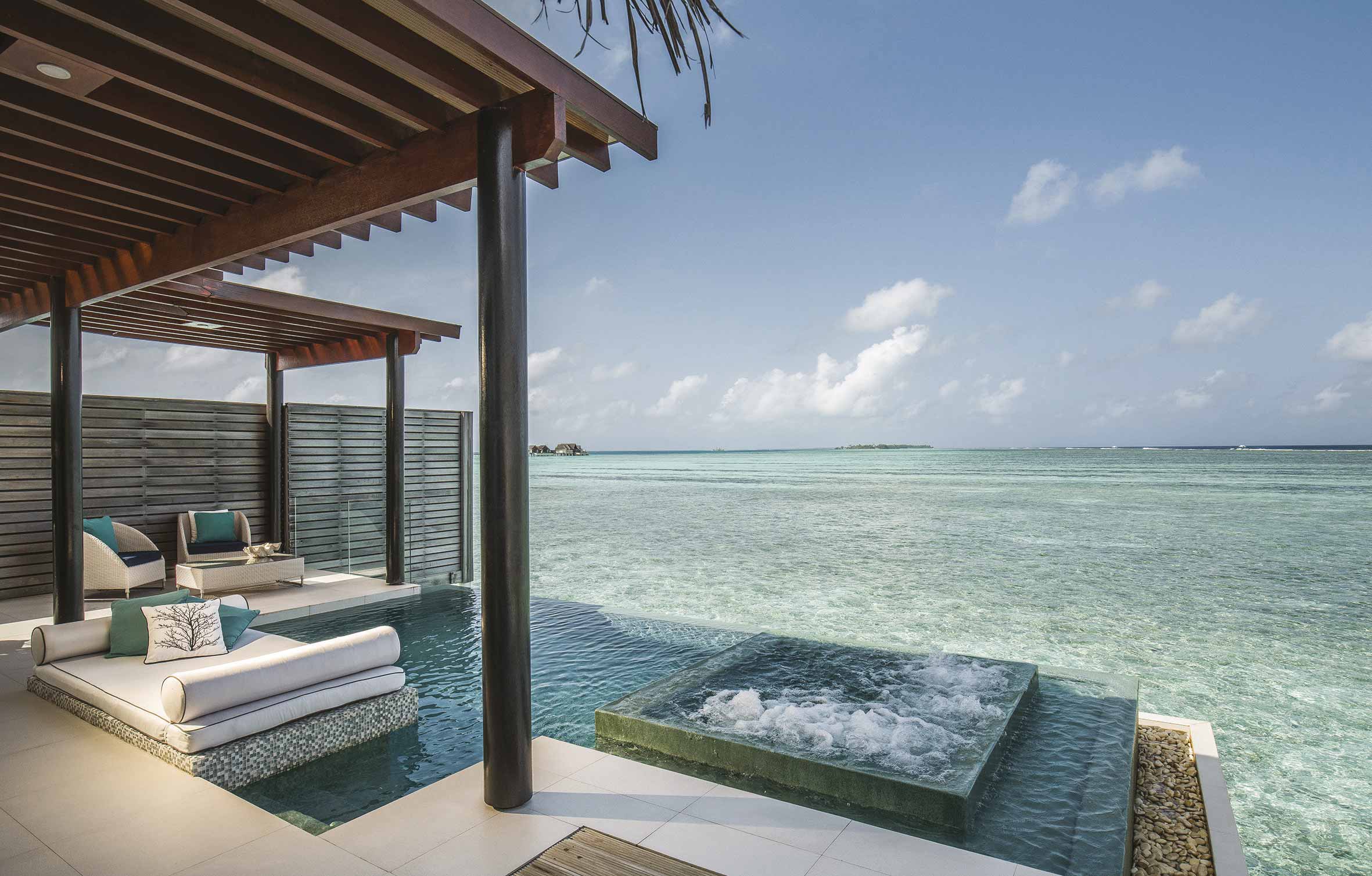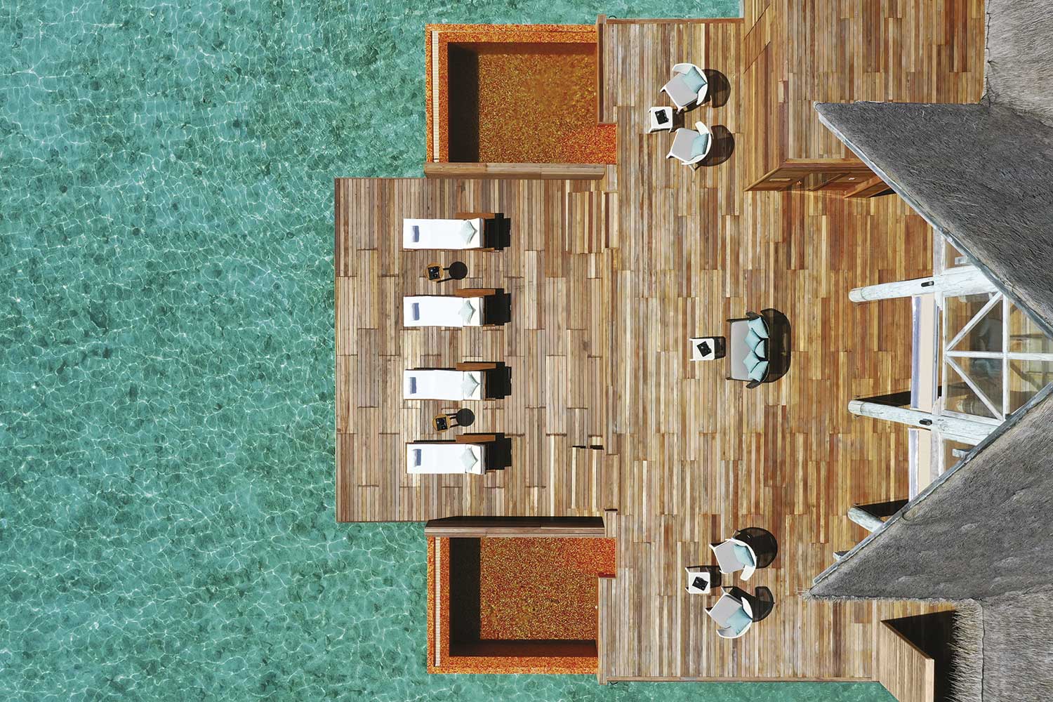 Falo de gentileza, acima de tudo. Uma água de coco para refrescar antes de conhecer o quarto. E que quarto! Uma vila sobre a água, com piscina privativa, rede flutuante sobre o mar e a vontade de passar o resto do dia ali. A banheira de hidromassagem com fundo de vidro proporciona vistas e visitas especiais da vida marinha. Mas há muito a fazer – depois, claro, de um mergulho nas águas transparentes, ao lado de peixes e arraias coloridas.
