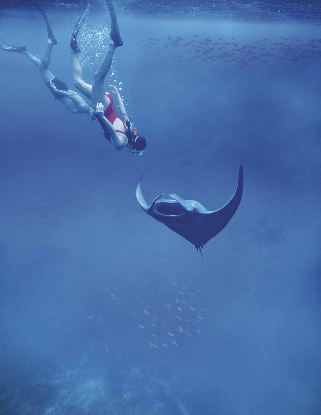 Snorkeling com as arraias jamantas na Hanifaru Bay, um dos passeios proporcionados pelo Niyama Private Islands – Foto: Divulgação
