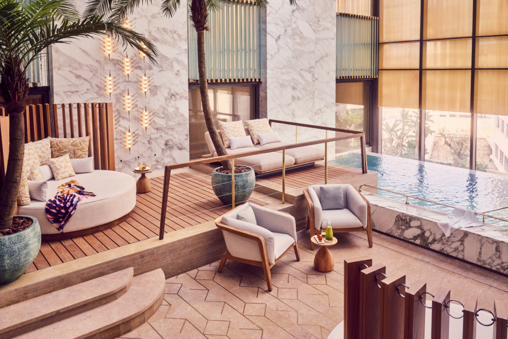 Instalado em um edifício Art Déco dos anos 1950, o Royal Mansour Casablanca abriu suas portas em 2024 com a missão de reinterpretar o luxo marroquino sob a ótica contemporânea – e cumpriu com precisão cirúrgica. Depois de uma restauração minuciosa de oito anos, o hotel renasceu com 149 quartos e suítes elegantes, restaurantes que circulam entre a alta gastronomia marroquina e sabores internacionais, além de bares que recuperam o charme cosmopolita da Casablanca dos anos dourados. Ali, a herança do país encontra um brilho moderno, sempre guiada pelo espírito visionário da Royal Mansour Collection.