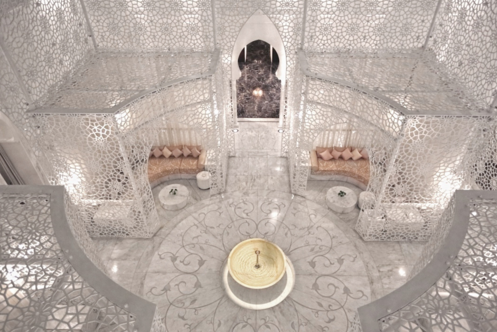 Mas é no Le Spa Royal Mansour Casablanca que a narrativa ganha intensidade. Espalhado por 2.500 metros quadrados e dois andares, o espaço é um santuário urbano onde tudo (absolutamente tudo) foi pensado para desacelerar o corpo e afinar os sentidos. Tratamentos exclusivos ocupam sete salas; dois hammams evocam tradições que atravessam séculos; e uma suíte privativa, piscina de imersão, salão de beleza e um centro fitness de última geração completam a experiência.