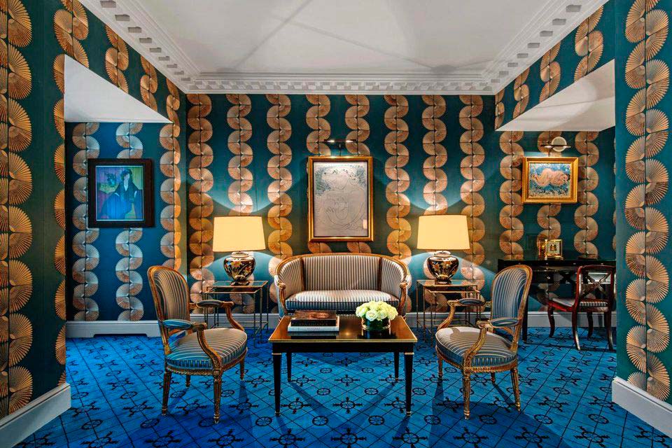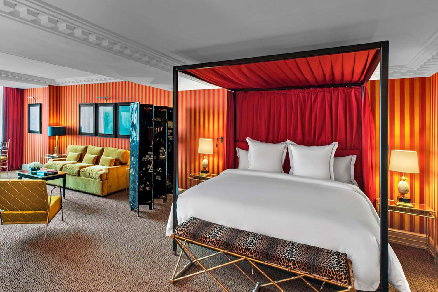 Alguns dos quartos apresentam um toque particularmente especial que é improvável que você encontre em um quarto de hotel: um relógio Jaeger-LeCoultre Atmos, que extrai energia de pequenas flutuações de temperatura e pressão. Um Atmos que pertenceu à avó de Dokhans está no suporte de mármore do colorido restaurante Le Schiap, batizado em homenagem ao ícone da moda da era Déco. O restaurante celebra a “joie de vivre” da cidade, assim como algumas de suas grandes personalidades como Gertrude Stein, Diana Vreeland e Karl Lagerfeld.
