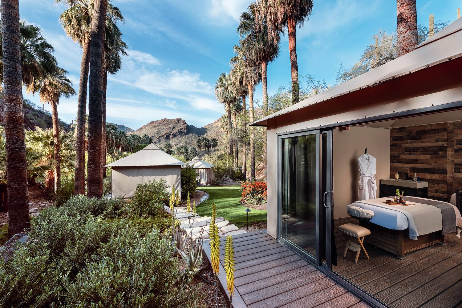 Embora as cabines sejam incrivelmente confortáveis, não perca uma noite no mágico terraço exterior do Castle Hot Springs.