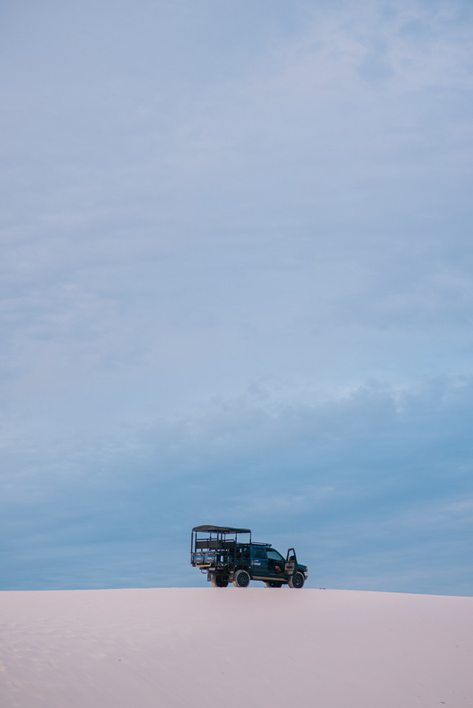 Nenhum dos dois conhecia o paraíso tropical, apesar de ser muito bem recomendado pelos amigos. Chamou a atenção o contraste de caos e paz que o destino tem. Enquanto os centros urbanos – como o de Barreirinhas – emanam essa atmosfera caótica, vide trânsito local e circulação massiva de motocicletas, a paz reinava em momentos como o nascer do sol bem cedo, por volta das 4h, quando já estavam de pé, e o crepúsculo em meio às areias e lagoas. O foco da viagem não era cobrir tudo, mas descobrir – a cada passo dessa jornada – a imensidão das proporções: seja pelo branco vertiginoso das areias, o azul do céu, as imensas montanhas ou a beleza natural das lagoas. Captar cada momento foi o mais marcante, pois se perdiam, se deixando levar e se surpreendendo com o inesperado.