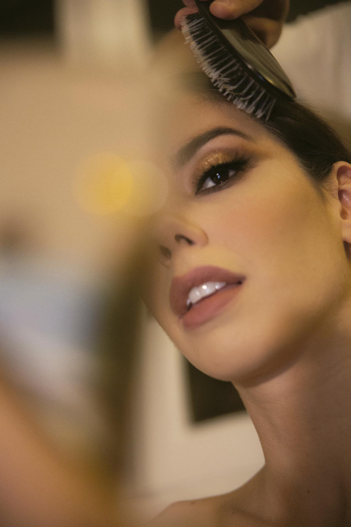 Vou para a academia a pé, treino – costumo fazer musculação com personal trainer e, às vezes, spinning – e, se tiver um compromisso na sequência, já almoço na lanchonete de lá. Tem uma marmitinha de frango com batata-doce que adoro. Se estiver muito atrasada, como no Uber mesmo. Quando saio de casa para fazer foto, vou de cara limpa. Se vou fazer qualquer outra coisa, passo protetor solar com cor, blush, rímel e lip balm. Se o cabelo estiver bonito, vai solto. Se estiver feio, vai preso em um coque.