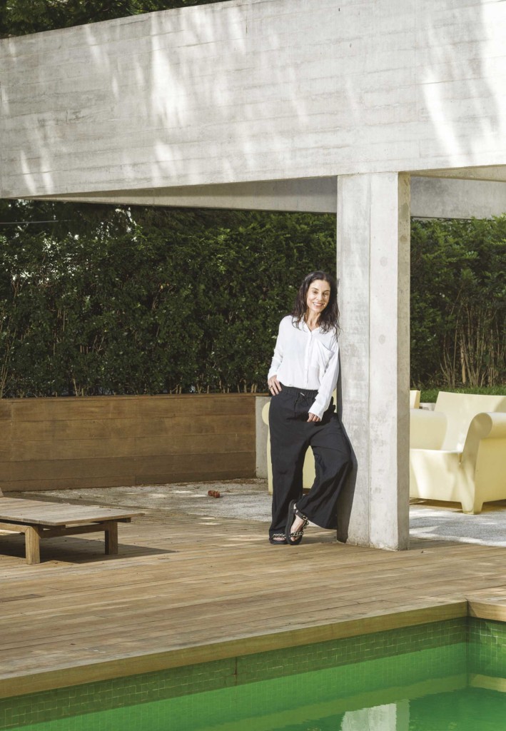Poderíamos voltar ao início desse texto, e para aquela lista de adjetivos, para descrever perfeitamente a casa que Raquel divide com o marido, Roberto, e onde cresceram os filhos, Vanessa, de 28 anos, e Tomas, de 26. Com reforma assinada por Marcio Kogan – não, ele não faz reformas, mas fez para Raquel, sua amiga de longa data, 18 anos atrás -, a casa é feita de linhas retas, cores sóbrias e muito cimento aparente. Em constraste com a elegância dos traços, o astral da casa é animado e solar. “Gosto de receber, gosto que meus filhos tragam os amigos, gosto da casa cheia”, diz Raquel. Só não esperem que ela vá para a cozinha. “Sou péssima, cozinhar nunca foi meu forte. Mas adoro arrumar a mesa e encher de comida, adoro tomar vinho.” O toque de humor fica por conta da coleção de patinhos de borracha que adorna o lavabo. “Tenho mais de 500”, conta Raquel.