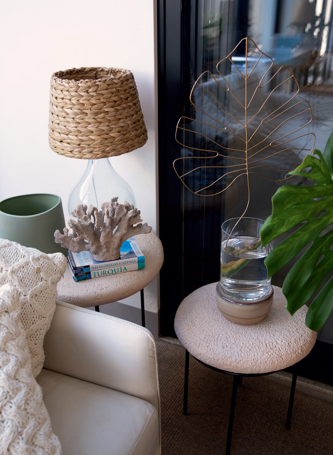 Detalhes do décor minimalista e orgânico – Foto: Gabrielle Souza, com edição de moda Rodrigo Yaegashi