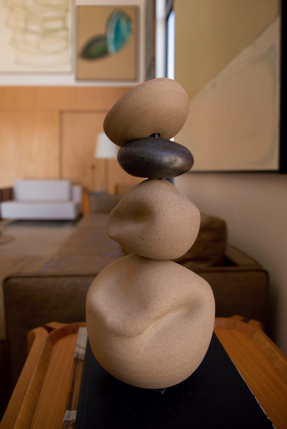 Escultura de pedra da artista Taciana Amorim – Foto: Gabrielle Souza, com edição de moda Rodrigo Yaegashi