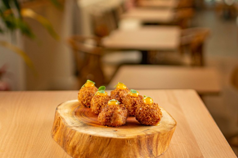 Junto também a essas porções de makimonos veio também um dos meus pratos preferidos da degustação: os bombons de cordeiro. Consiste em paleta de cordeiro, formando uma casquinha, como se fosse um bombom Sonho de Valsa ou Serenata de amor, com um pouco de geléia de damasco por cima. Era simplesmente sensacional, pois os bombons eram extremamente crocantes e a carne de cordeiro estava muito saborosa e não estava muito seco. Crocante por fora e suculento por dentro.