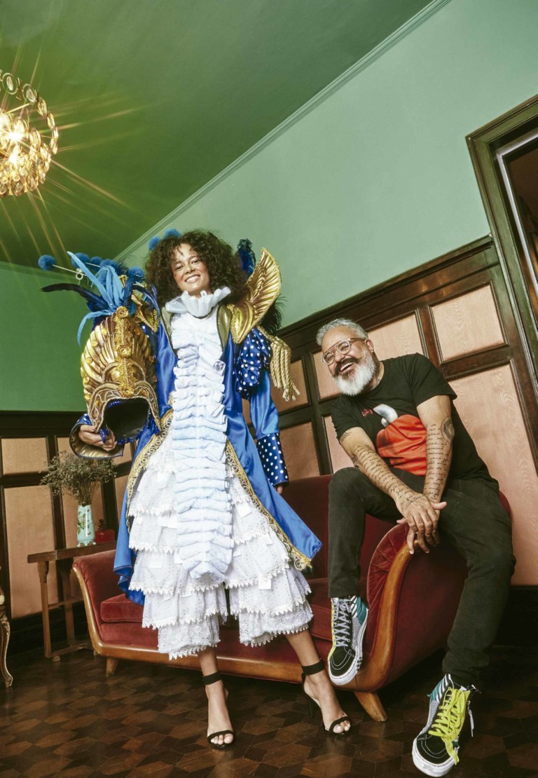 Acostumado a levar para o São Paulo Fashion Week coleções com storytelling, o estilista está mais envolvido do que nunca com a festa mais popular do País. Ele assina o visual da Velha Guarda da paulistana Rosas de Ouro, e seu universo virou combustível para a agremiação Canto da Alvorada, de Belo Horizonte. “Fiquei muito feliz com esses convites, porque adoro a data”, diz o estilista, que costuma curtir a folia no Recife.