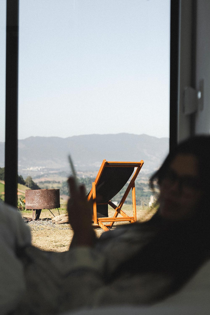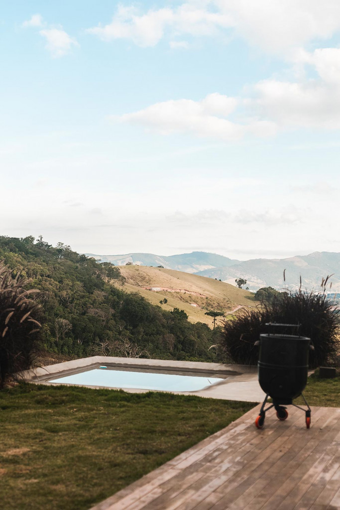 A Casa Vista, sempre foi um sonho de Sanches, até por que, de formação, ele é arquiteto, e tinha como ideal executar uma casa. Ele conta que quando a pandemia chegou, ele teve a oportunidade de levar a cabo a construção do zero. “É quase um refúgio mesmo, ela [a casa] está situada em Extrema, Minas Gerais, bem na divisa com São Paulo, fica a uma hora e 40 minutos do centro de SP, em uma montanha 360º de natureza, tanto que não chegava nem água nem eletricidade, tive que conseguir puxar para ter. Foi uma missão muito grande, mas, ao mesmo tempo, era uma missão de vida conseguir executar esse refúgio em confecção com a natureza”, explica. “Então a criação veio desse meu sonho pessoal, não só de criar esse refúgio, como de fazer as pessoas experimentarem essa nova visão de mundo que ele estava oferecendo ali, porque a casa é 200% autossuficiente: a água a gente pega de uma fonte que tem dentro do nosso terreno, a energia a gente busca com quase 20 placas de geração solar, e a casa é exatamente esse flerte com a arte, natureza e arquitetura traduzida em locação via Airbnb para quem quiser essa experiência”, completa.