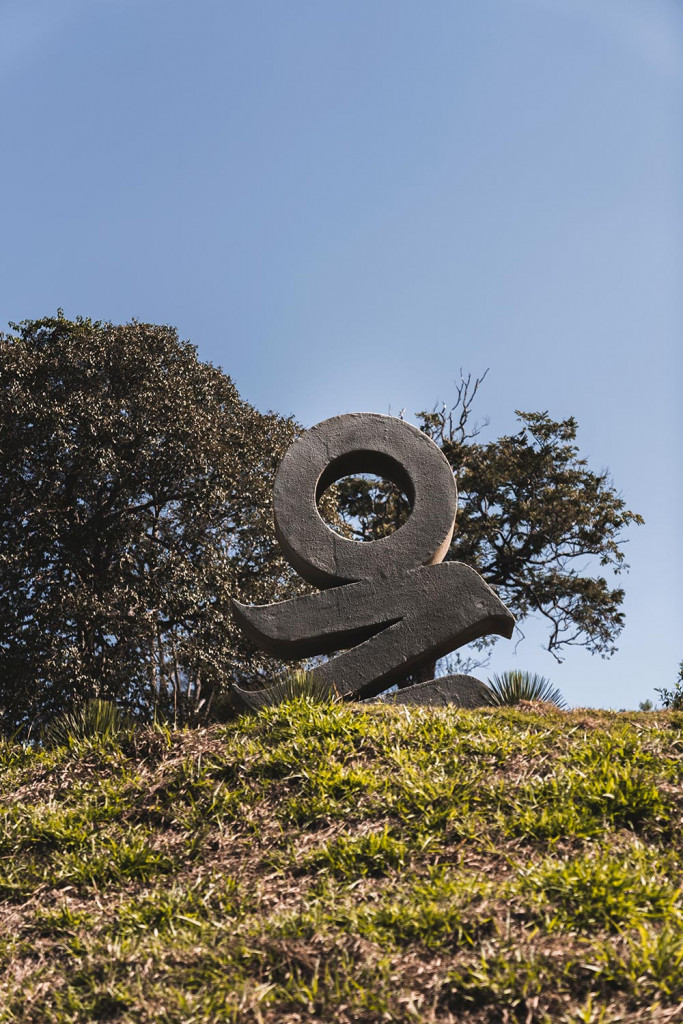 “Eu tentei desenhar autoralmente tudo, a casa, as pias do banheiro, a mesa da cozinha, a piscina diamantada, tem mais de quatro esculturas espalhadas pelo terreno que tem mais de 10 mil metros quadrados, também fomentando essa ideia de instalação artística, quase como um míni-Inhotim do artista Sanches.”