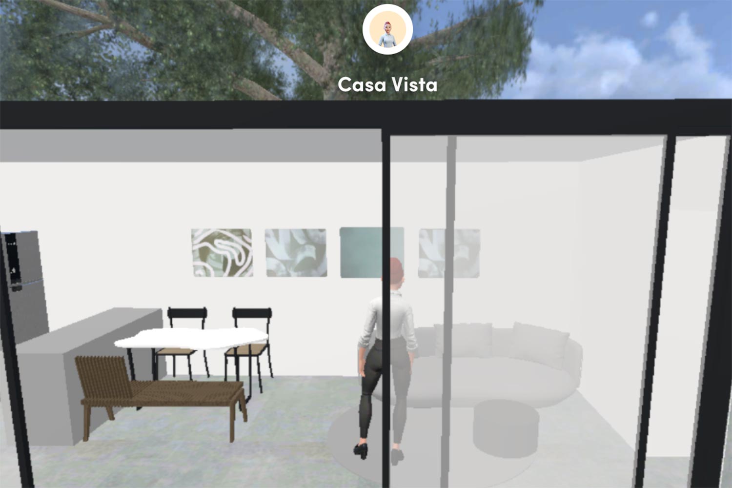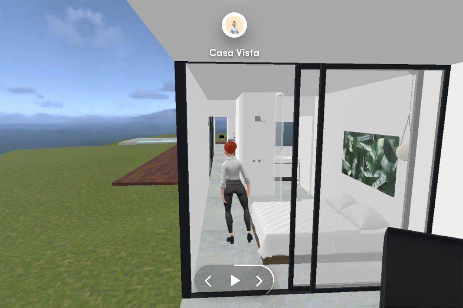 A vista é uma verdadeira viagem, é possível percorrer toda a casa e sua área externa tanto no desktop como mo celular, e a visitação se torna completa se for feita com óculos de realidade virtual, como o Vr Quest, do Facebook. Ademais, se na hora da vista outras pessoas estiverem fazendo o mesmo, seja de onde for e de qual plataforma for, é possível interagir com os outros avatares e até conversar. “O mais legal desse serviço é que se eu entro aqui da minha casa, e estou dando um rolê no metatarso da Casa Vista via mobile, você aí da sua casa está no desktop, e uma pessoa lá na China via Vr Quest, as três pessoas estão visitando a casa ao mesmo tempo, elas conseguem conversar lá dentro, acenar, mandar um tchauzinho, vivenciar outras avatares dentro do local.”