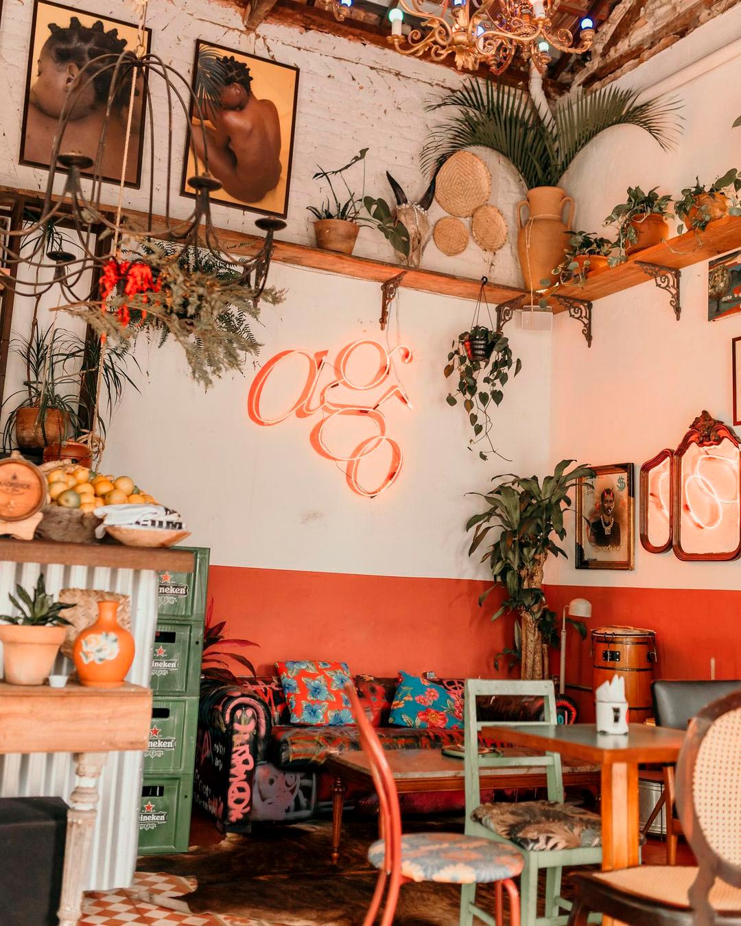 O Agô é um bar afrocentrado, todas as obras de arte são de artistas pretos e muitas inspiradas em religiões de matriz africana e orixás.