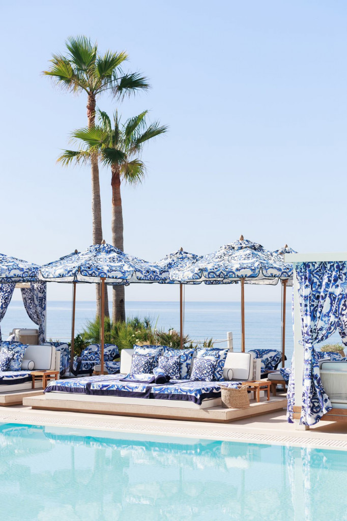 Na Costa del Sol, a marca retorna ao elegante La Cabane, em Marbella, com outra interpretação do Blu Mediterraneo. Piscina, terraço e restaurante são integrados ao ambiente visual proposto pela grife, com destaque para a loja efêmera da Dolce&Gabbana Casa. O espaço gastronômico, liderado pelo chef Dani García, conta ainda com um Dolci Room inspirado no tradicional Carretto Siciliano, entre referências de cor e cultura.