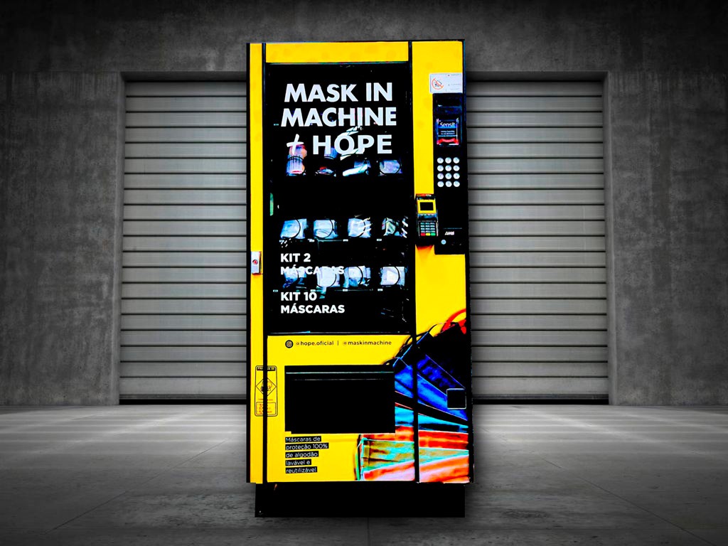 O Grupo Hope, em parceria com a Arquitrama – empresa fornecedora de infraestrutura de feiras e stands – e a Mask In Machine, amplia sua forma de distribuição e atuação, lançando na terceira semana de agosto vending machines que vão revender máscaras da marca.