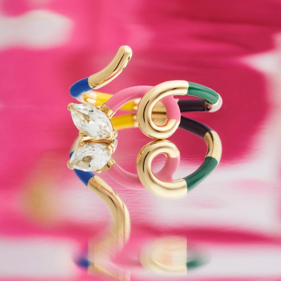 A designer italiana, nascida em Milão, lançou sua marca em 2013, após se formar no curso de design de joias da Central Saint Martins, em Londres. Seu trabalho sempre propõe muitas cores e tem grande inspiração na cultura pop. A coleção “You’re So Vine”, lançada no ano passado, foi um enorme sucesso. Em formas torcidas, as peças de Bea combinam ouro, esmalte e pedras. À venda no mundo todo, aqui no Brasil é representada pela multimarcas Beatriz Werebe.