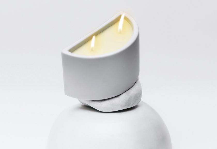 Marca de lifestyle recém-lançada, tem como primeiro produto uma linha de velas de produção artesanal, do design às fragrâncias. Victoria Sarro e Guilherme Berjeaut criaram o formato de meia lua em porcelana preta e branca: juntas, formam a versão maxi de 4 pavios. A White Citrus tem notas de bergamota e flor de laranjeira.