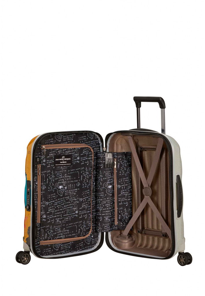 A funcionalidade no interior da coleção Jean-Michel Basquiat x Samsonite C-Lite é tão incrível quanto seu exterior. Fabricado com a tecnologia RECYCLEX™ de alta qualidade, com o interior feito de garrafas PET recicladas pós-consumo, a mala C-Lite é particularmente atraente para os viajantes conscientes com a sustentabilidade.