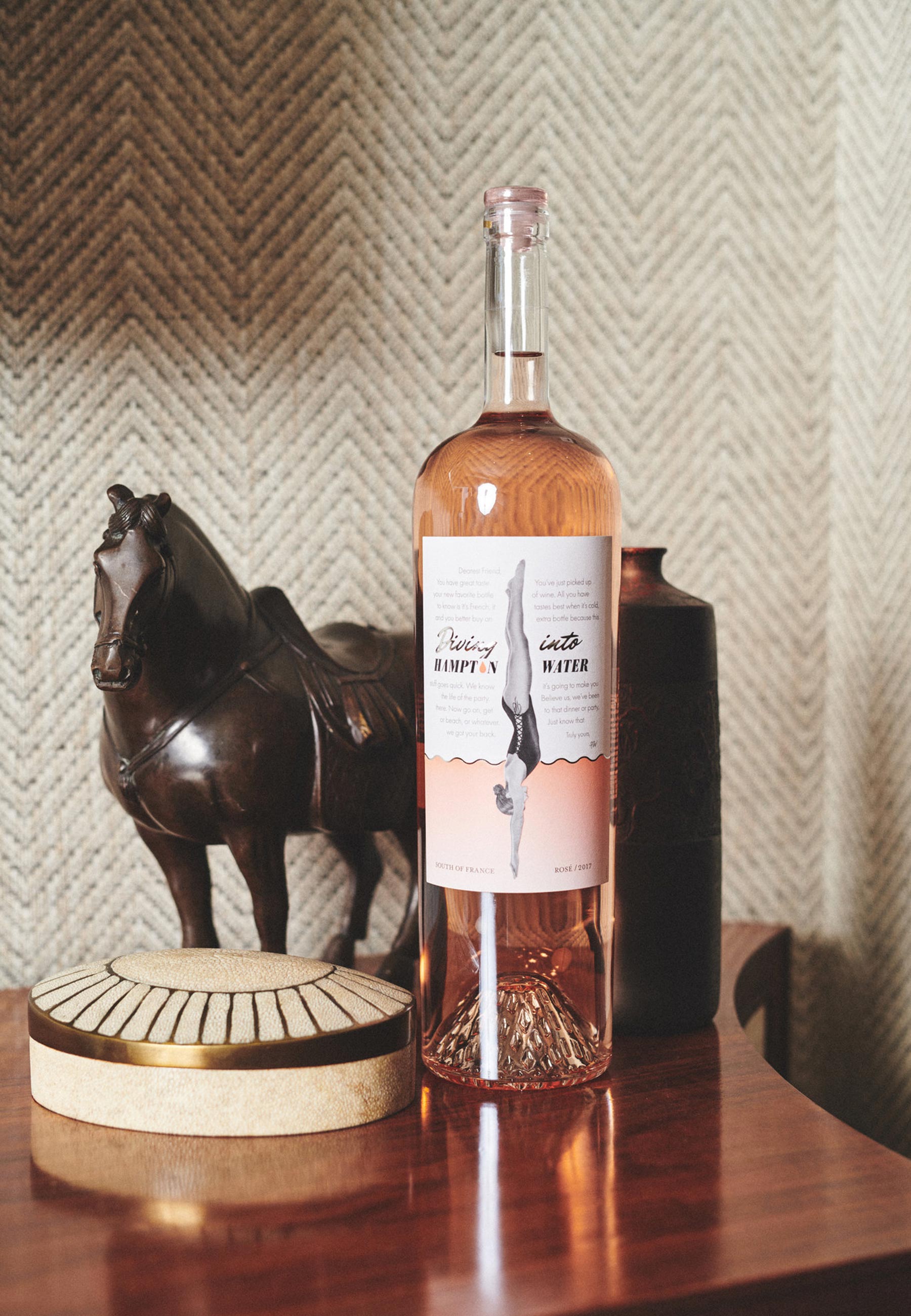 O vinho tem em seu rótulo uma mergulhadora vestindo um maiô vintage. “Nossa garota definitivamente sabe começar uma festa”, diz o site oficial do Hampton Water.