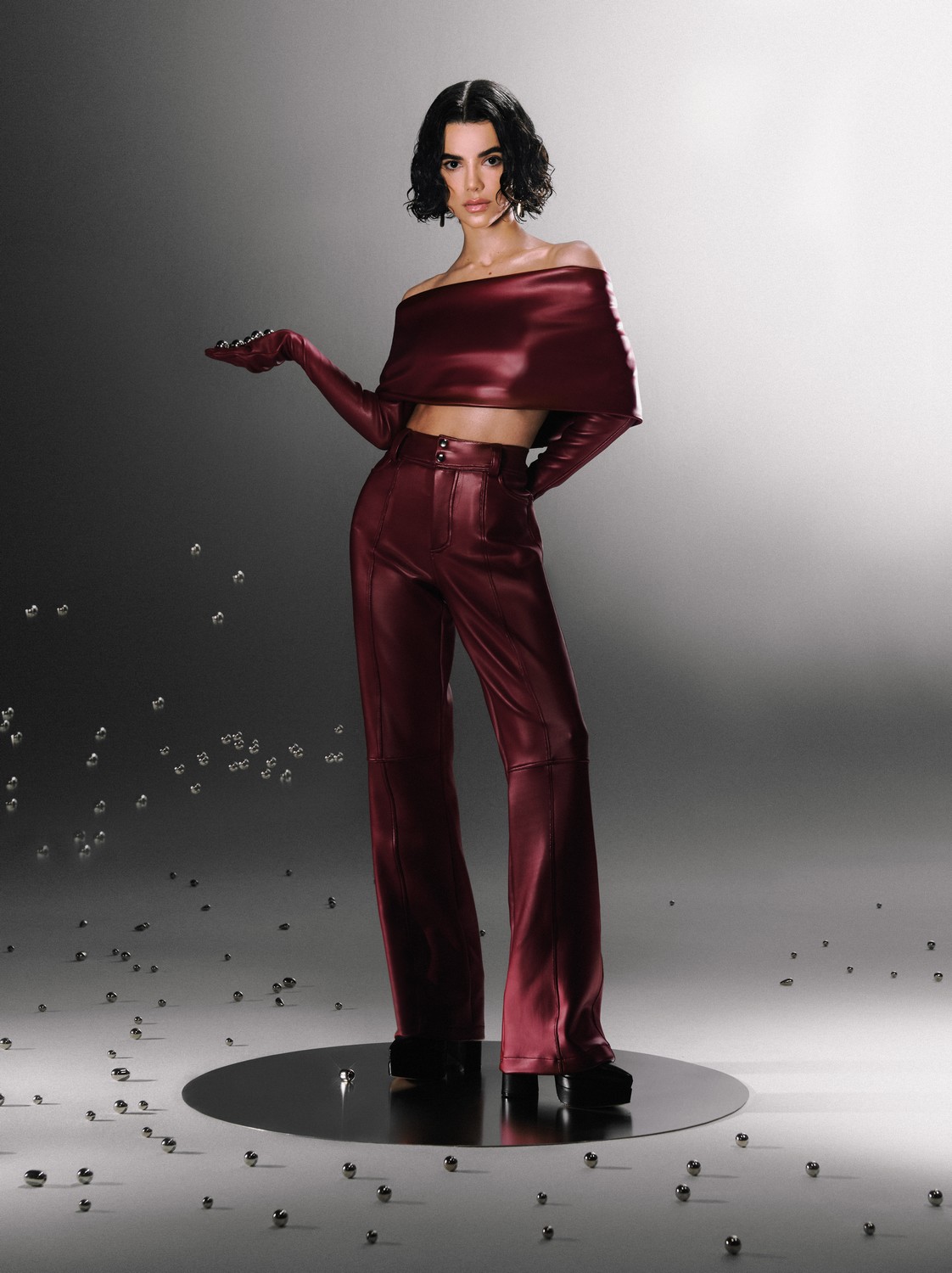 Manu Gavassi usa top, calça e luvas Moun, brincos Tiffany & Co. e sapatos Schutz – Foto: Hugo Toni, com direção criativa de Raphael Tepedino, styling de Carol Roquuete e beleza Gui Casagrande