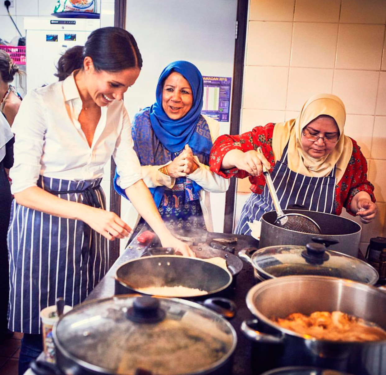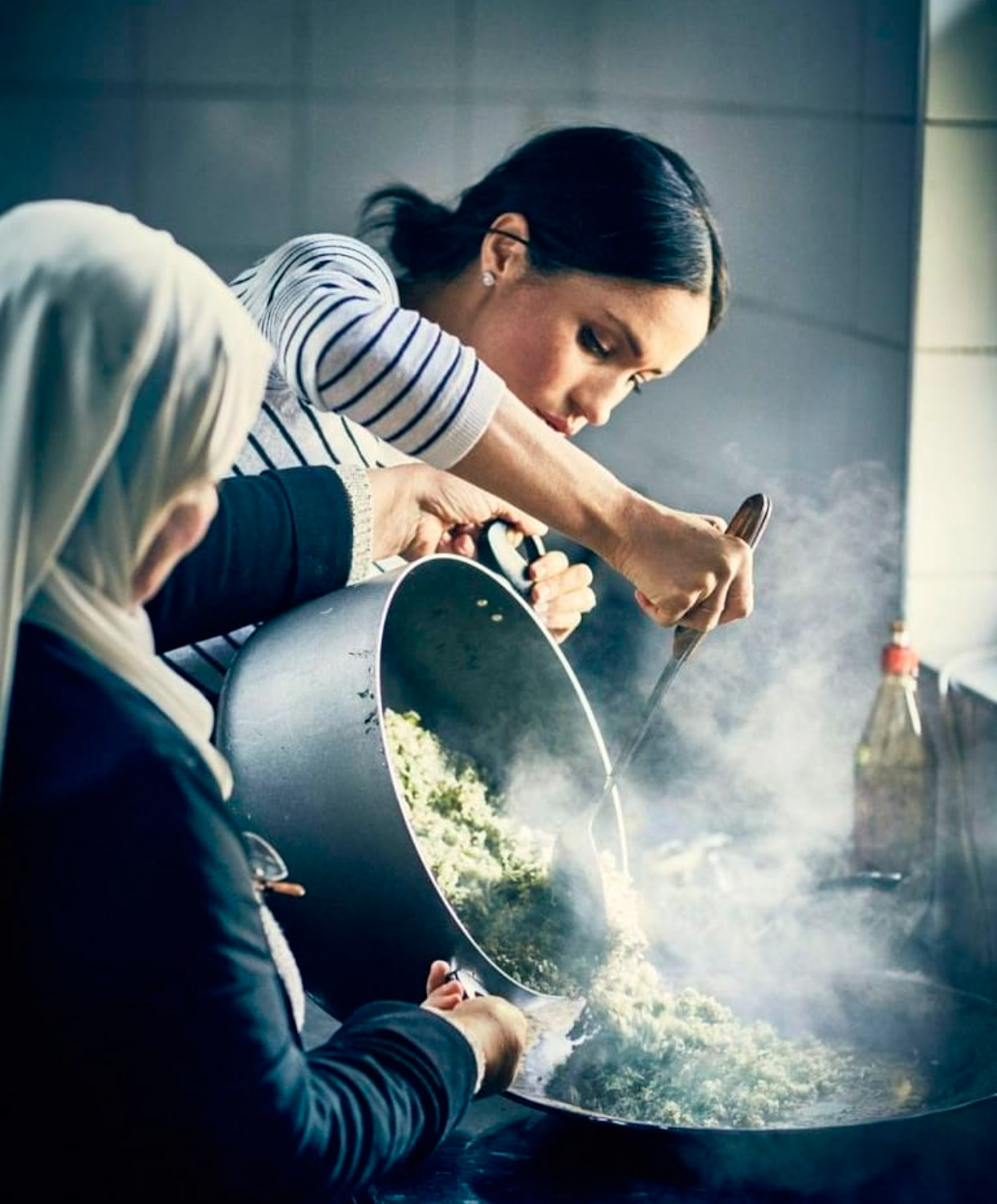 A cozinha comunitária fica no centro cultura Al Manaar, no centro da cidade, e Meghan tem ajudado na cozinha de lá desde janeiro, sem fazer alarde. Agora, ela investe neste livro de receitas, batizado e “Together: Our Community Cookbook”, que terá venda revertida para que o projeto passe a funcionar sete dias da semana, sem interrupção (agora ela funciona de quinta a domingo).