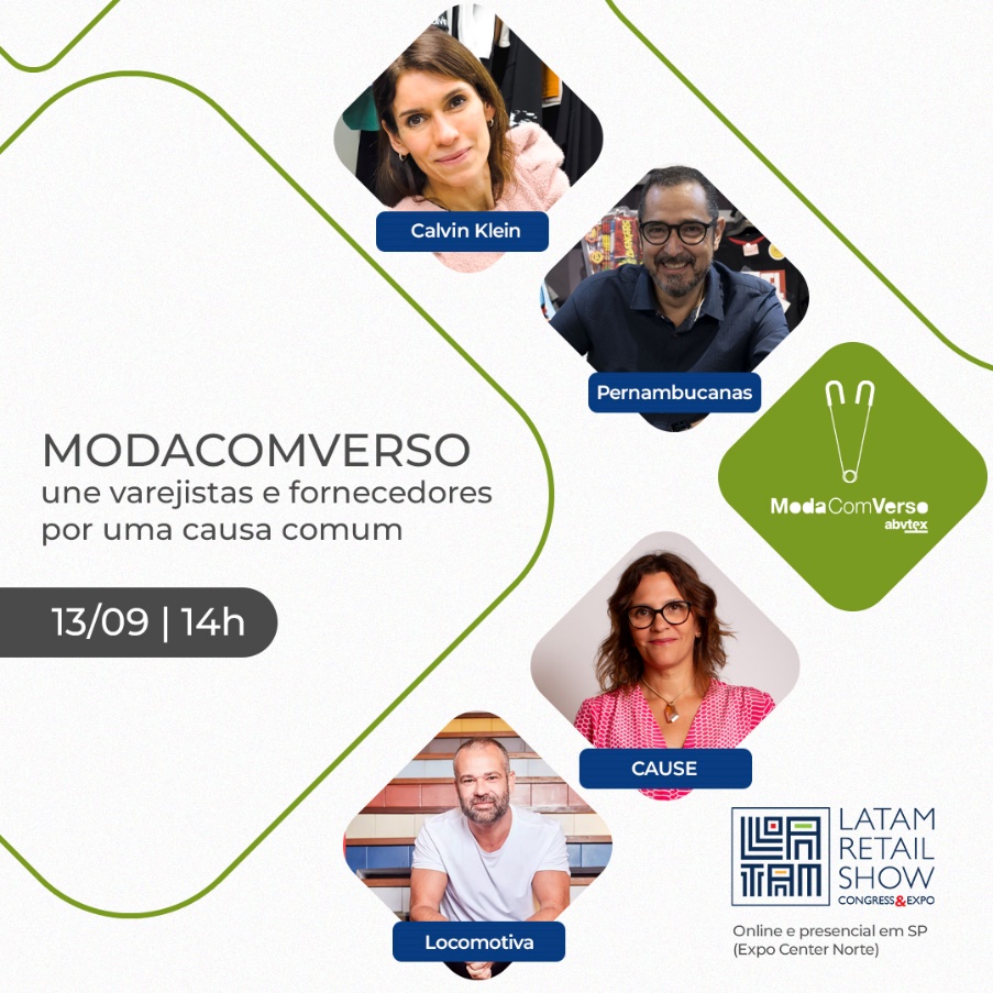 Com a participação das marcas Calvin Klein e Pernambucanas, o painel “ModaComVerso une varejistas e fornecedores por uma causa comum” será realizado no palco principal nesta terça-feira (13.09), às 14h.