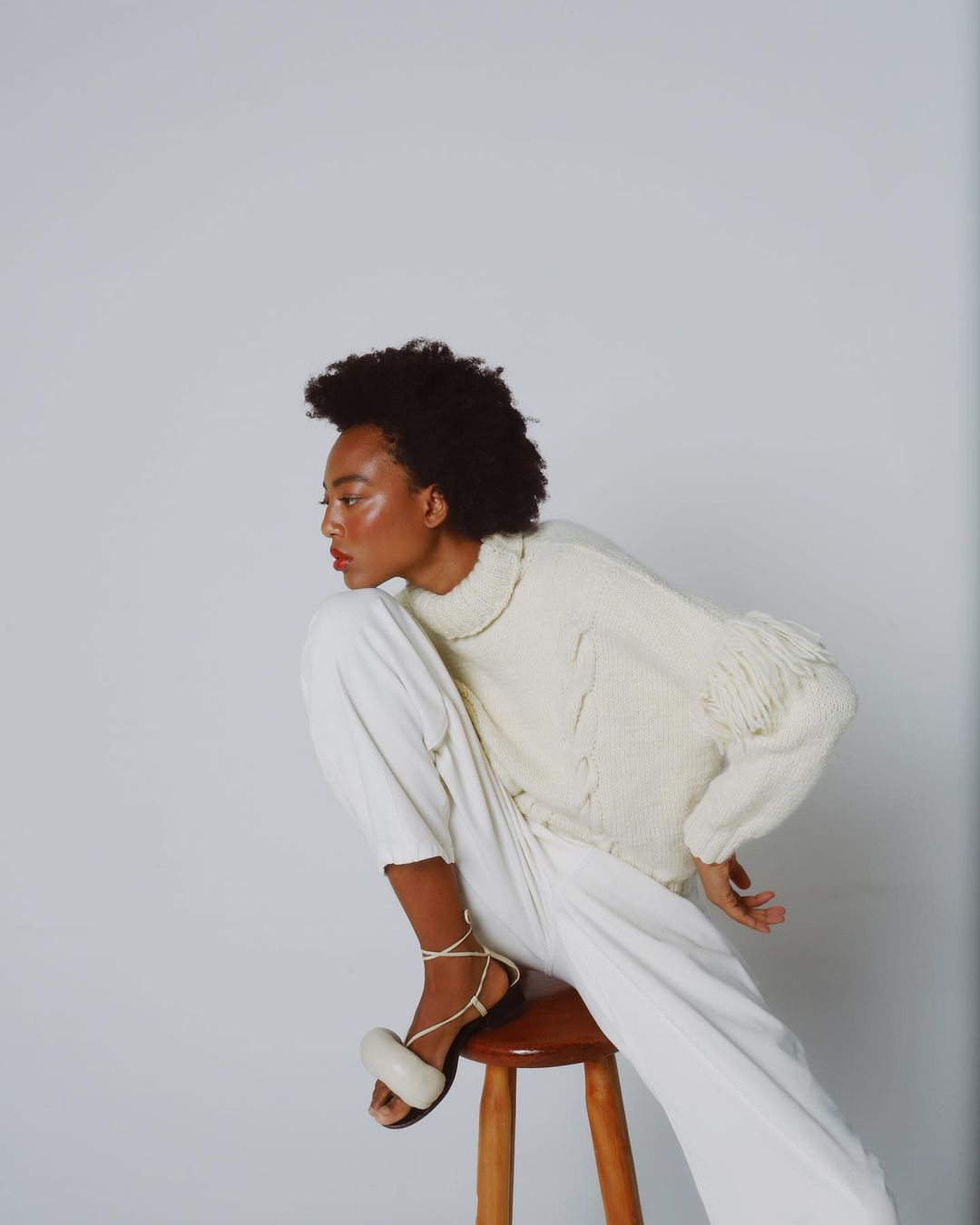 Eu sou responsável por desenvolver os modelos. Costumo me inspirar muito nas viagens que fiz, nos lugares que visitei – sua arte, história e cultura – e eles como me marcaram. Sempre coloco desajeitadamente as ideias no papel e busco desenvolver com a artesã que tem o perfil da peça uma versão piloto. Depois, vejo como ela fica no corpo, se cumpriu minhas expectativas ou se necessita alterações no modelo ou cores. Assim que a peça é aprovada, ela passa a ser produzida por uma quantidade limitada de mulheres para que os modelos sigam o mesmo padrão, já que o crochê é uma produção artística e única de cada pessoa, umas com pontos mais largos e outras com pontos mais apertados.