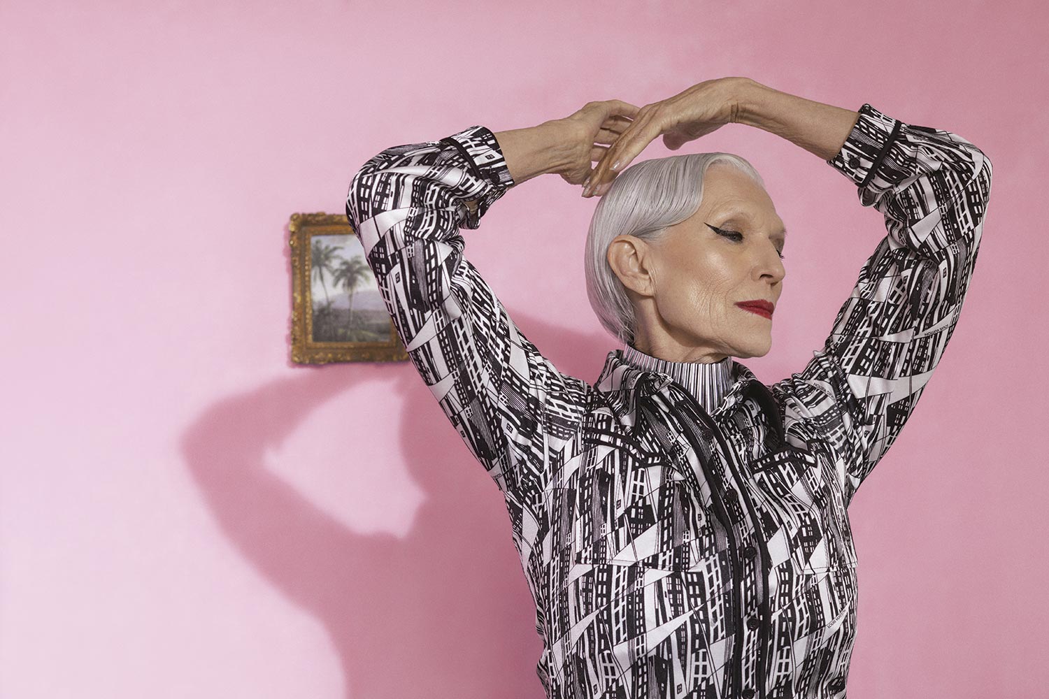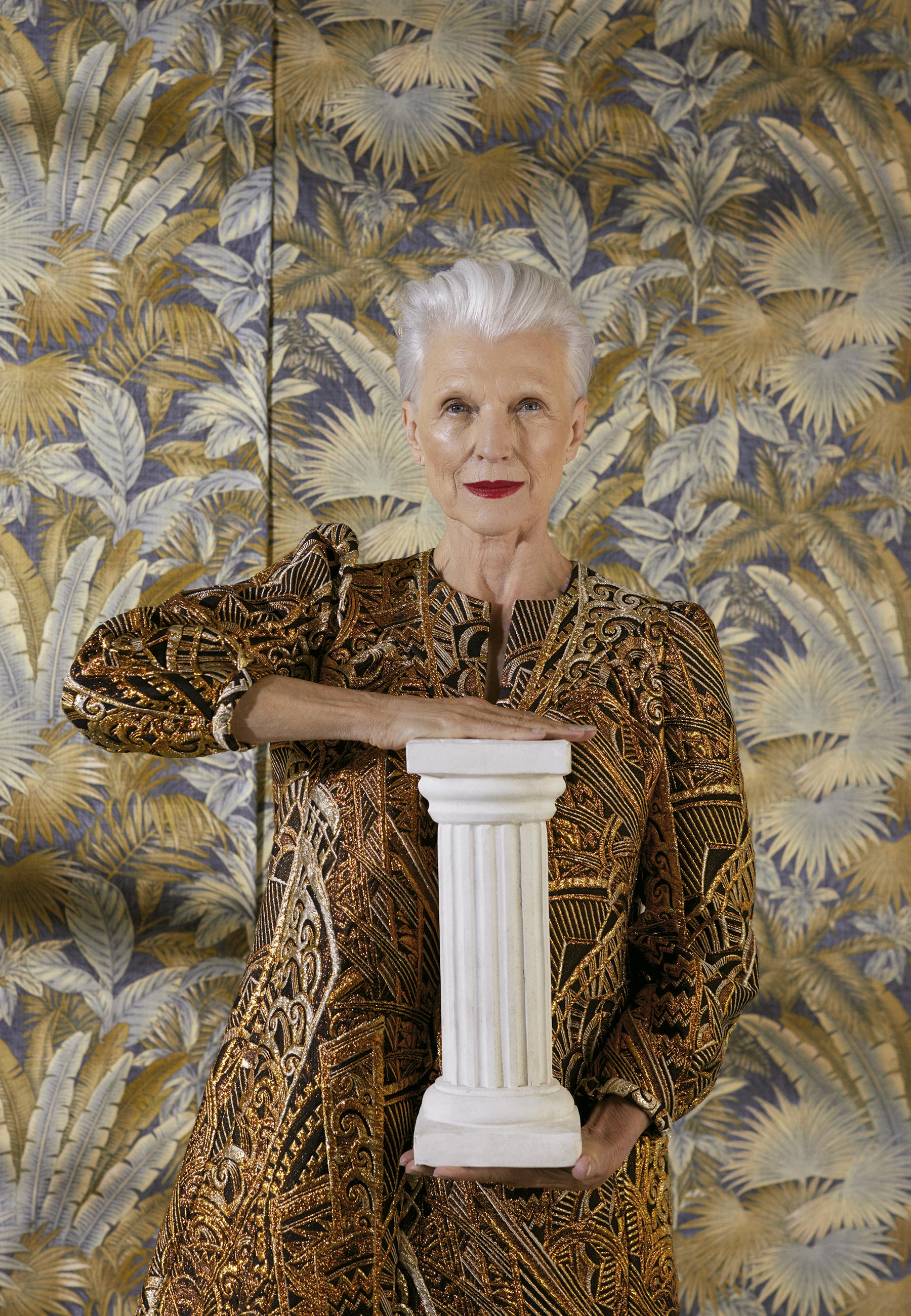 Maye Musk veste Louis Vuitton – Foto: Ricardo Rivera, com edição de moda de Filipa Bleck, styling de Jahulie Elizalde, artista convidado Lutfi Janania, maquiagem Christyna Kay, cabelo Errol Karadag e digital tech Chrissy Connors