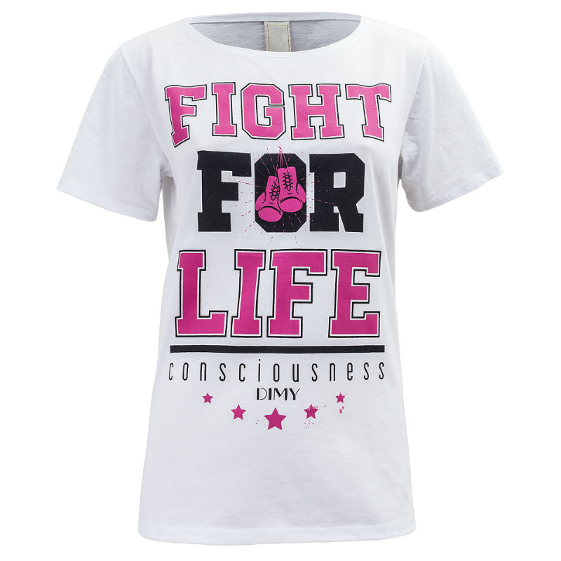 Ainda na onda das camisetas, a Dimy também desenvolveu um modelo, a Fight for Life. A peça será vendida durante o mês e 50% do valor do lucro total de vendas será doado para a rede feminina de combate ao câncer de São João Batista – SC.