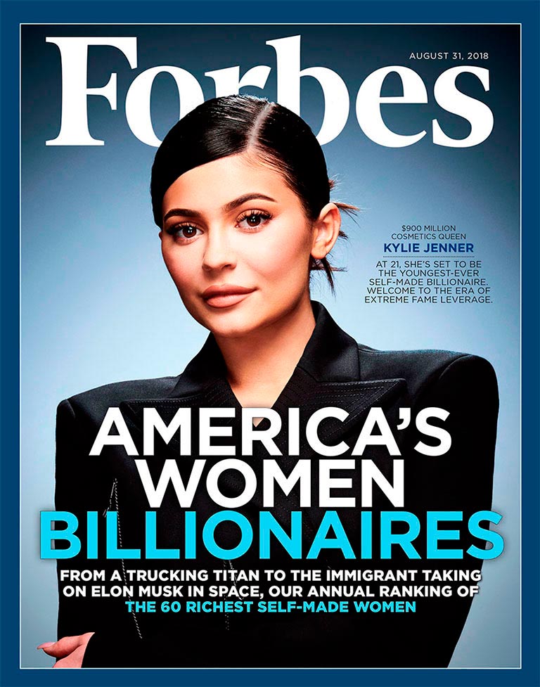 O poder de Kylie Jenner: a revista “Forbes” divulgou em julho a lista de “Self-Made Women” – ou seja, empresárias independentes – mais ricas dos Estados Unidos. Fundadora da marca de beleza Kylie Cosmetics, ela ocupa a 27ª posição do ranking, com fortuna feita com sua grife estimada em US$ 900 milhões – cerca de R$ 3,4 milhões.