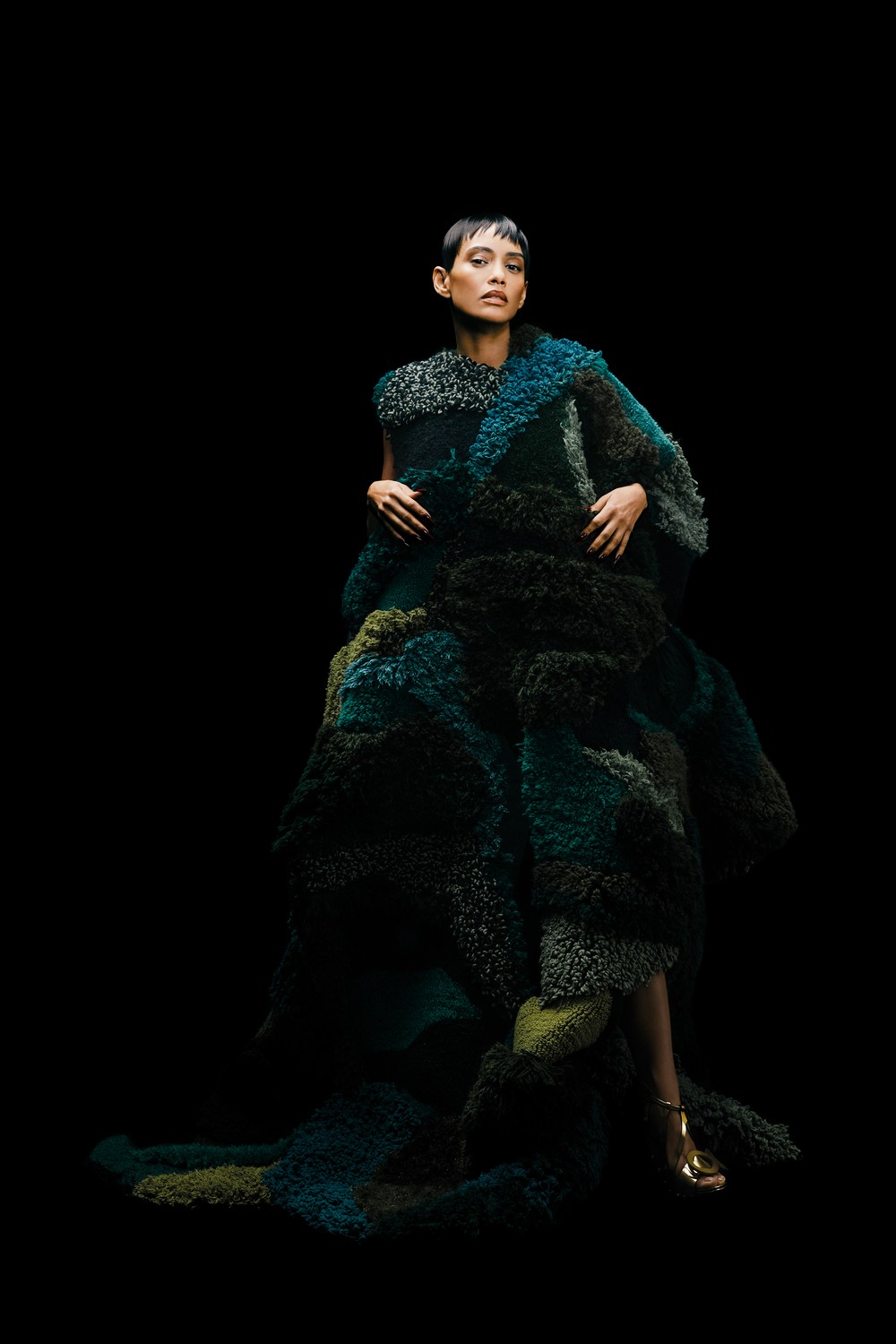 Taís Araujo usa tapeçaria Alex Rocca e sandálias Emilio Pucci – Foto: Bruna Castanheira (Group Art), com direção criativa de Raphael Tepedino, set design por Cassio Reis e Raphael Tepedino, styling de Rafael Cietto (ODMGT) e beleza por Jake Falchi
