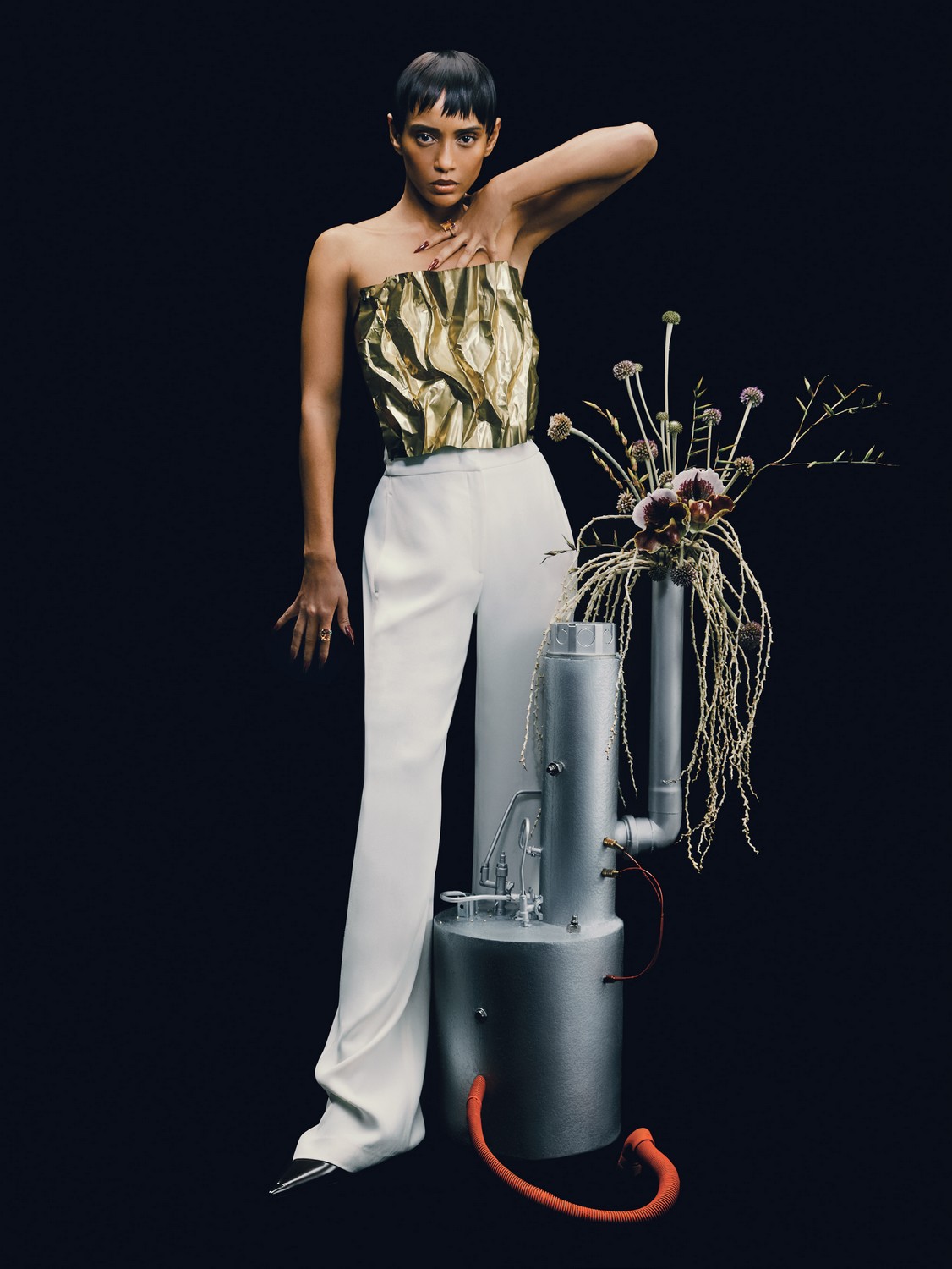 Taís Araujo veste look total Animale e anel Kelly Svensson – Foto: Bruna Castanheira (Group Art), com direção criativa de Raphael Tepedino, set design por Cassio Reis e Raphael Tepedino, styling de Rafael Cietto (ODMGT) e beleza por Jake Falchi