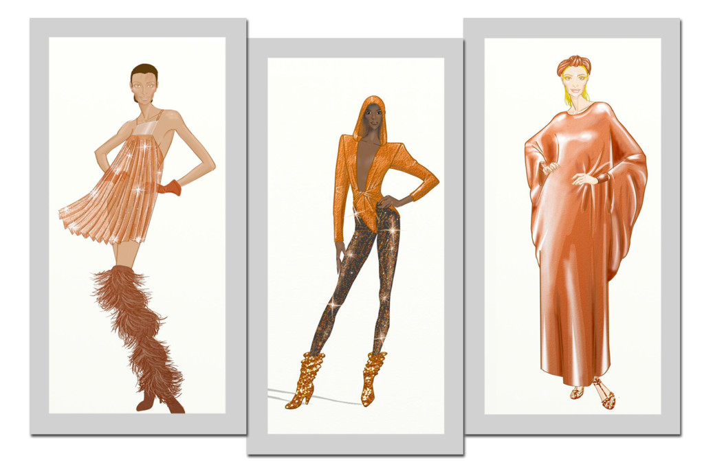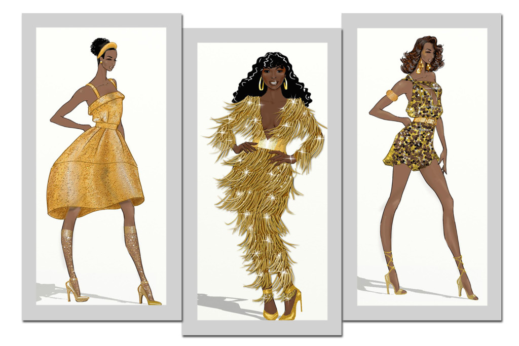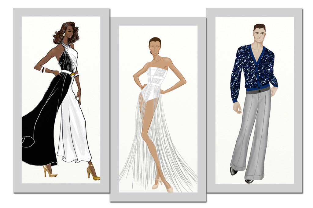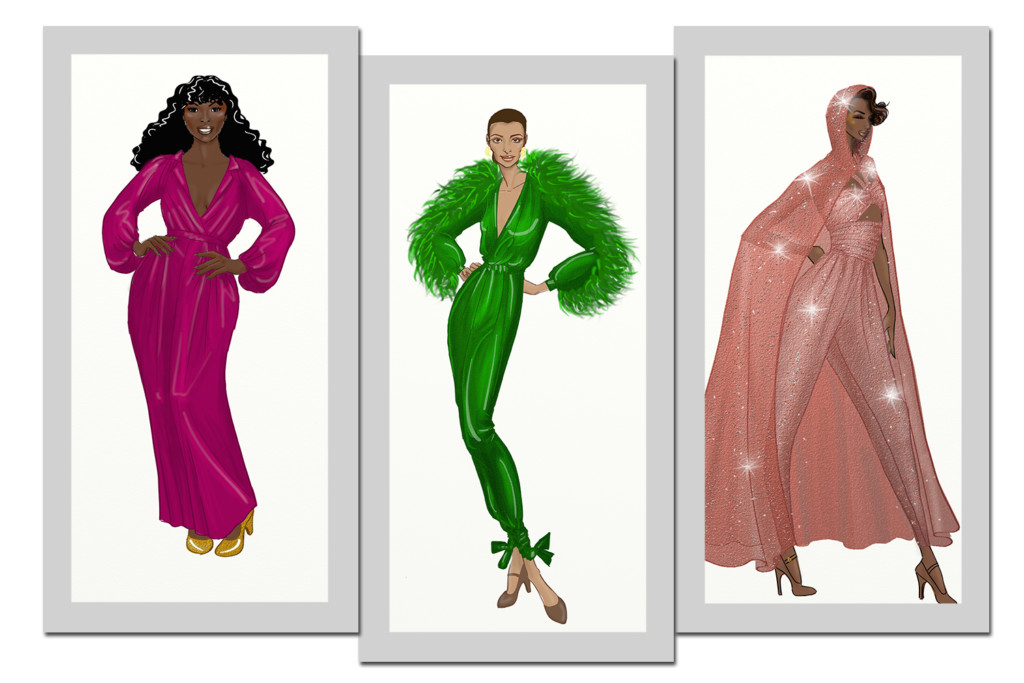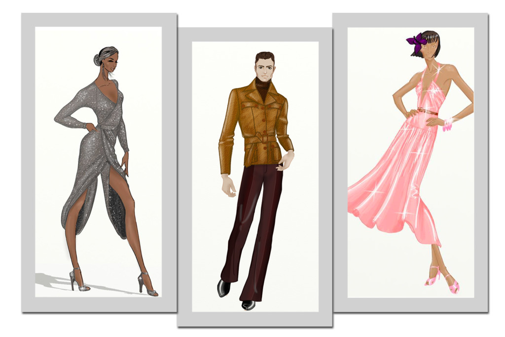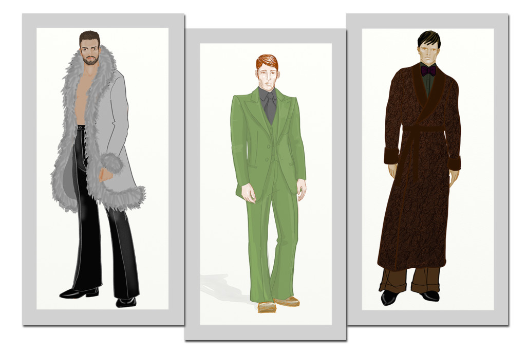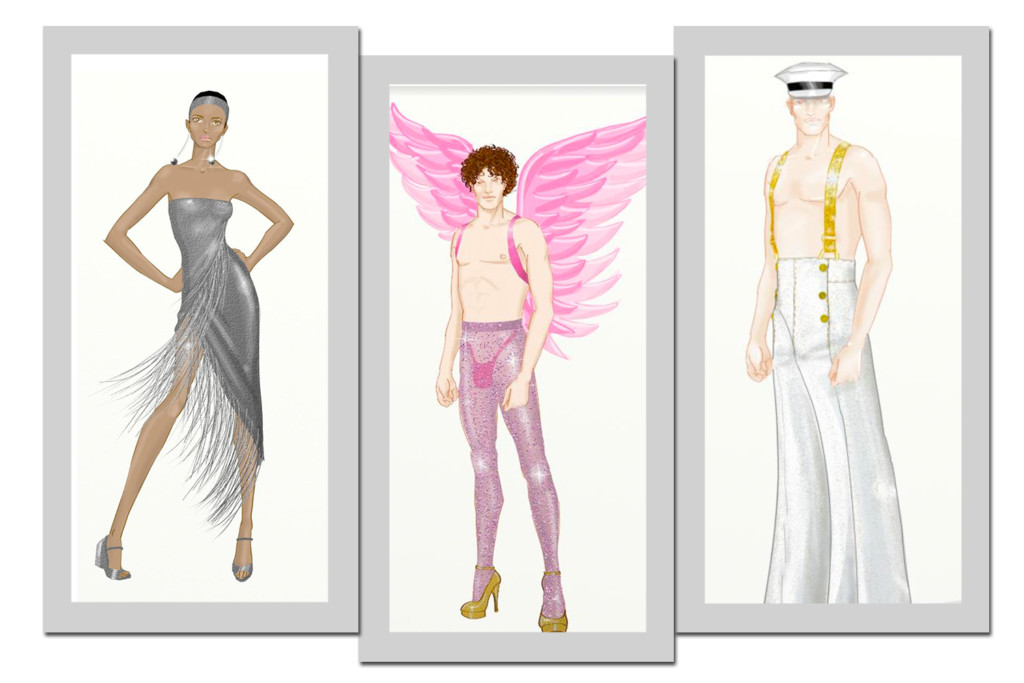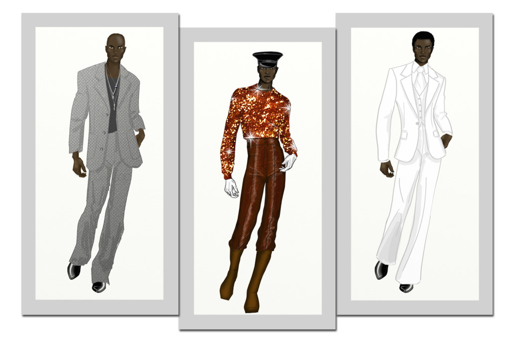 Eu desenhei os 200 figurinos técnicos e um amigo, Eduardo Inagaki, que é um baita ilustrador, desenhou os figurinos artísticos para mim. Eu fui me inspirar na econografia, em vídeos, em todo o universo imagético da Donna Summer. Fui pesquisar também, não só nela, como também em outras figuras da época, que frequentavam principalmente o Estúdio 54 que conversavam com o estilo dela, como Diana Ross, Cher, Tina Turner, Bianca Jaguer, muitas outras. Dos homens, eu vi um pouco de Fred Mercury, Elton John, Iggy Pop, Michael Jackson. Essas pessoas que tinham esse glamour nos shows e no cotidiano. Eu fui ver muita moda da época. Miguel me pediu algumas modas dos anos 60. Então, me inspirei Pierre Cardan; Paco Rabbane; um pouco de Balenciaga; Marquito, o mestre dos paetês brasileiros; Bob Mack, para as franjas. As referências eram as mais incríveis. O maior desafio foi fazer um figurino dignamente incrível com todas essas inspirações tão ricas.