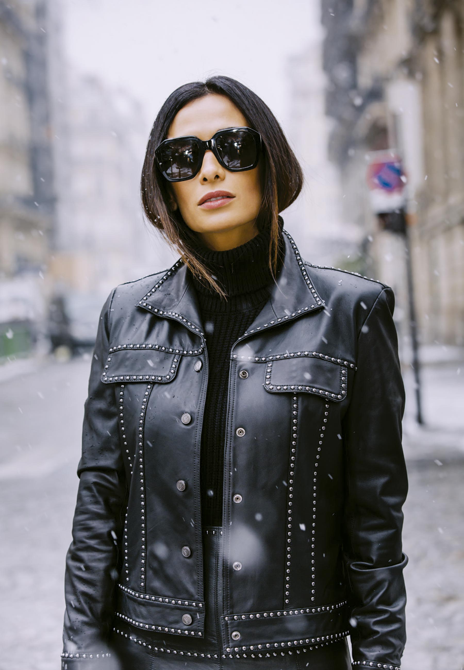 Olhei na varanda e descobri que estava nevando (muito!). Escolhi vestir uma saia mídi de couro azul da Verosenso e combinei com escarpins Chanel e turtleneck de cashmere. As peças da Verosenso são protagonistas de grande parte do meu closet invernal: com couro macio e modelagem e acabamento impecáveis, elas funcionam do aerolook ao coquetel, na linha chic sans efforts.
