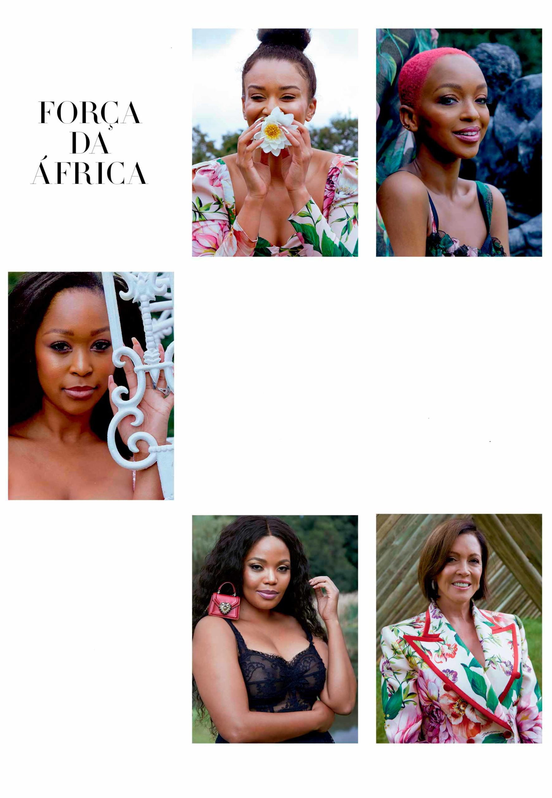 O extenso gramado do parque Nirox, em Joanesburgo, na África do Sul, repleto de esculturas de artistas de diversas partes do globo, serviu de cenário para as atrizes Terry Pheto e Pearl Thusi, a apresentadora Minnie Dlamini-Jones, a filantropa Carolyn Steyn e a empreendedora Nandi Madida mostrarem suas similaridades.