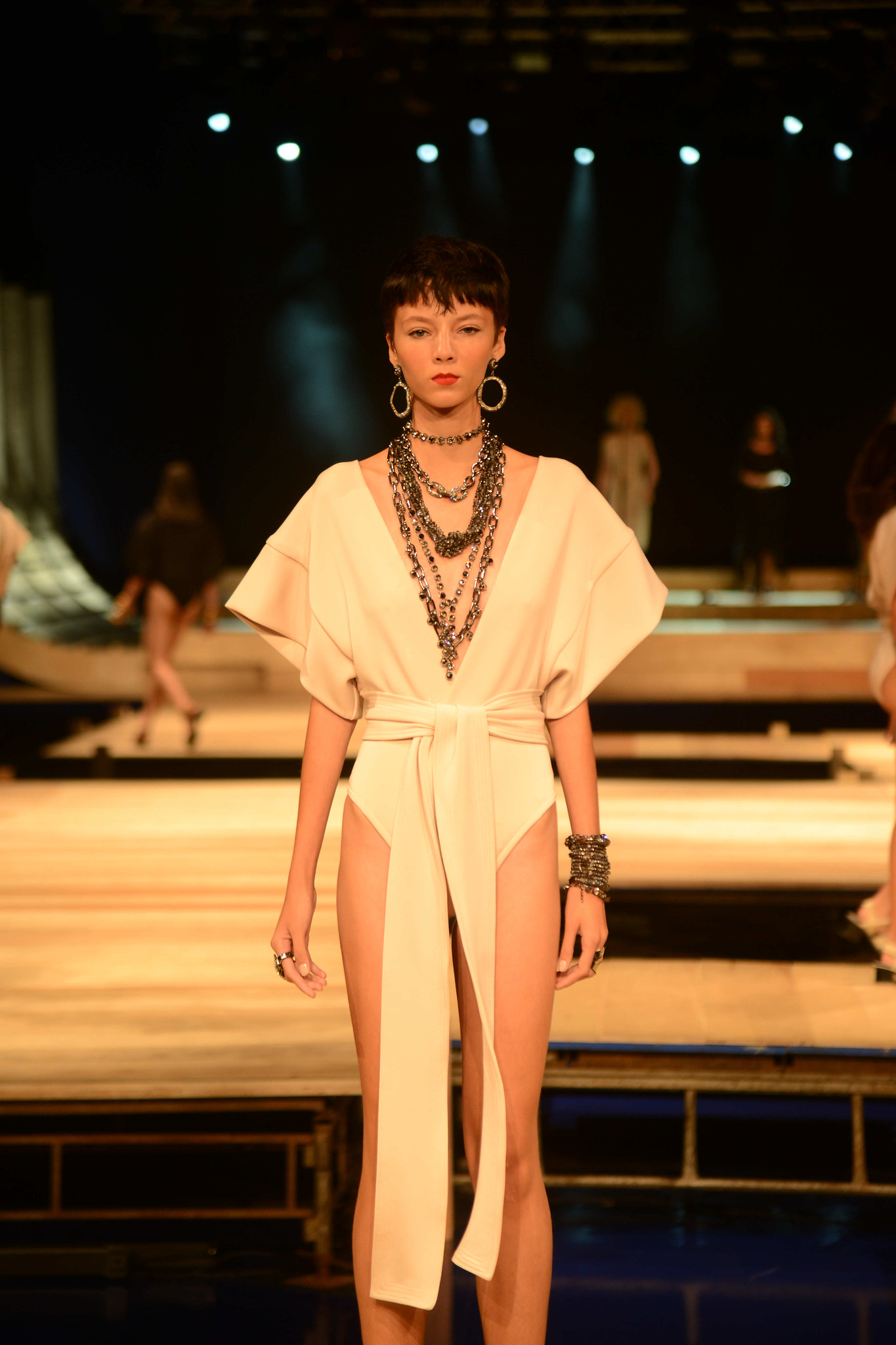 Entre bolsas, joias e sapatos, os acessórios também fizeram bonito no Minas Trend. No desfile da Trendbijoux por Sindijoias Minas Gerais, a marca de Mariana Amaral optou pelas correntes misturadas com pedrarias.