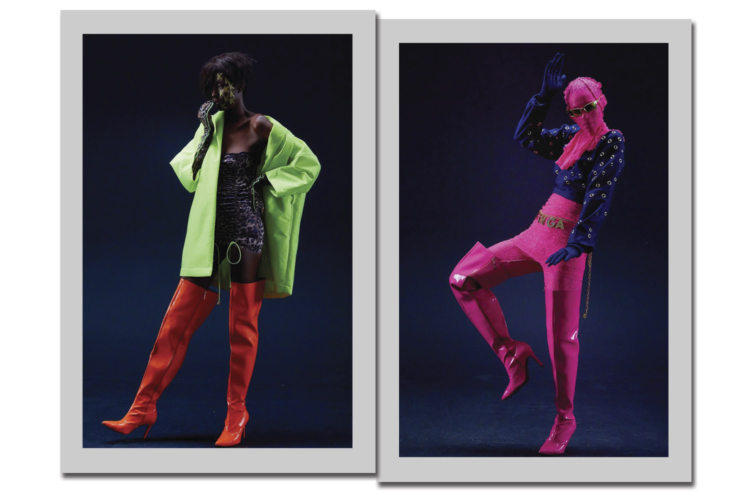 Inspirada nas cores, texturas e produtos encontrados no comércio popular do Brás, bairro central de São Paulo, a Ken-gá apresentou uma coleção extremamente vívida. As peças, que se destacam em tons de pink e dourado, reuniram elementos sensuais e que chama a atenção pela ousadia, como recortes, sobreposições que unem underwear a roupas amplas e silhuetas bem justas.