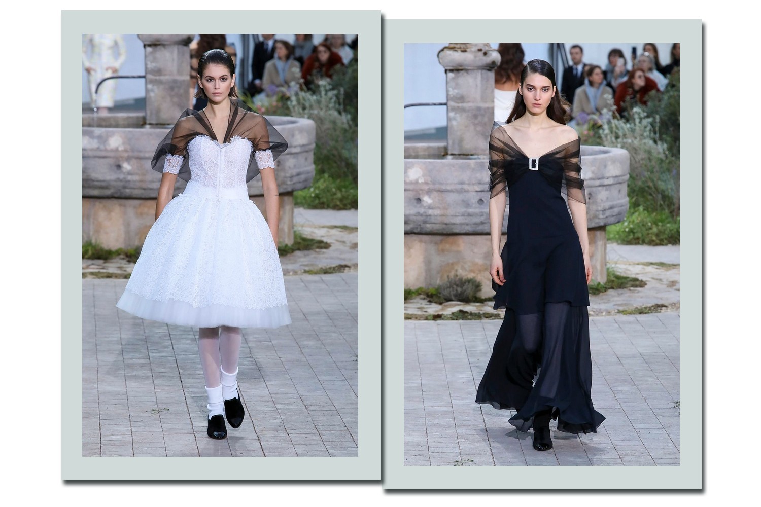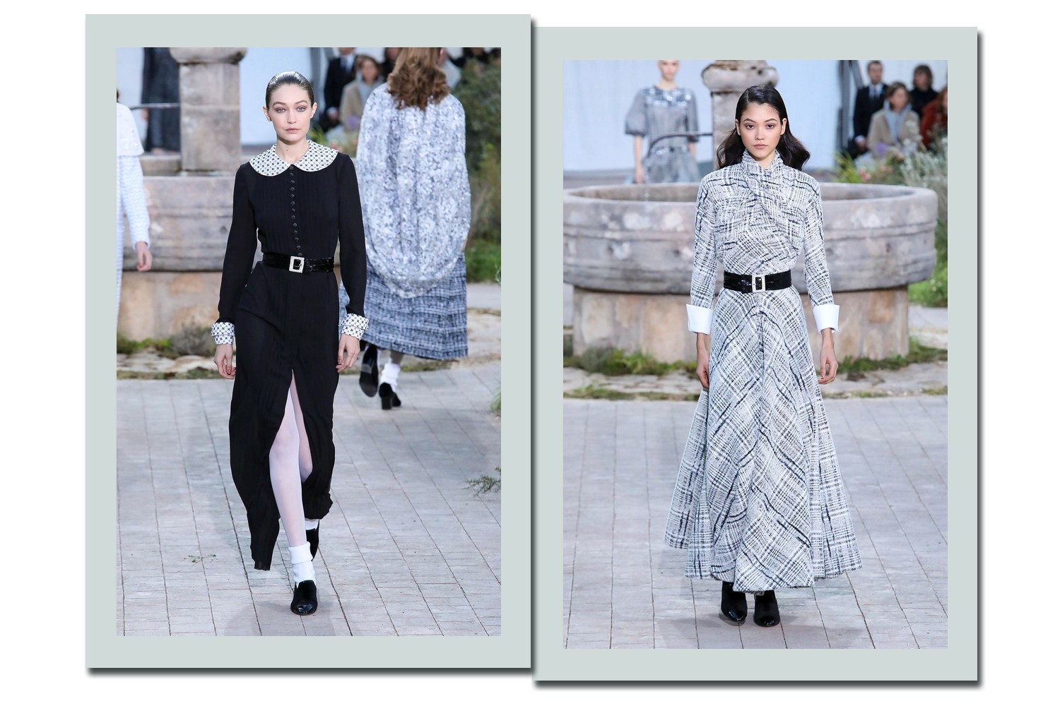 Um jardim rústico, cercado de inúmeros lençóis brancos estendidos em varais improvisados em fios de ferro foi o pano de fundo para uma coleção poética e diáfana, com longos rendados com mangas bufantes feito camisolas de menina, tailleurs com saias nos joelhos, como as inspetoras do orfanato se vestiam, sem se esquecer dos mocassins com salto médio com a meia soquete costurada no sapatos. Amarrações com tules e tweeds em vestidos e tailleurs lembraram os uniformes ou mesmo a forma como as mulheres do começo do século 20 poderiam se vestir. Golas com bordados que faziam as vezes de capa cobriram os ombros dos vestidos. Gigi Hadid estava linda com um preto longo, em uma dança do imaginário infantil de Gabrielle.
