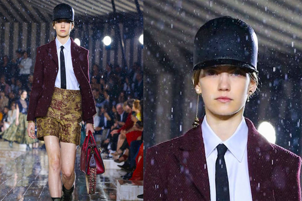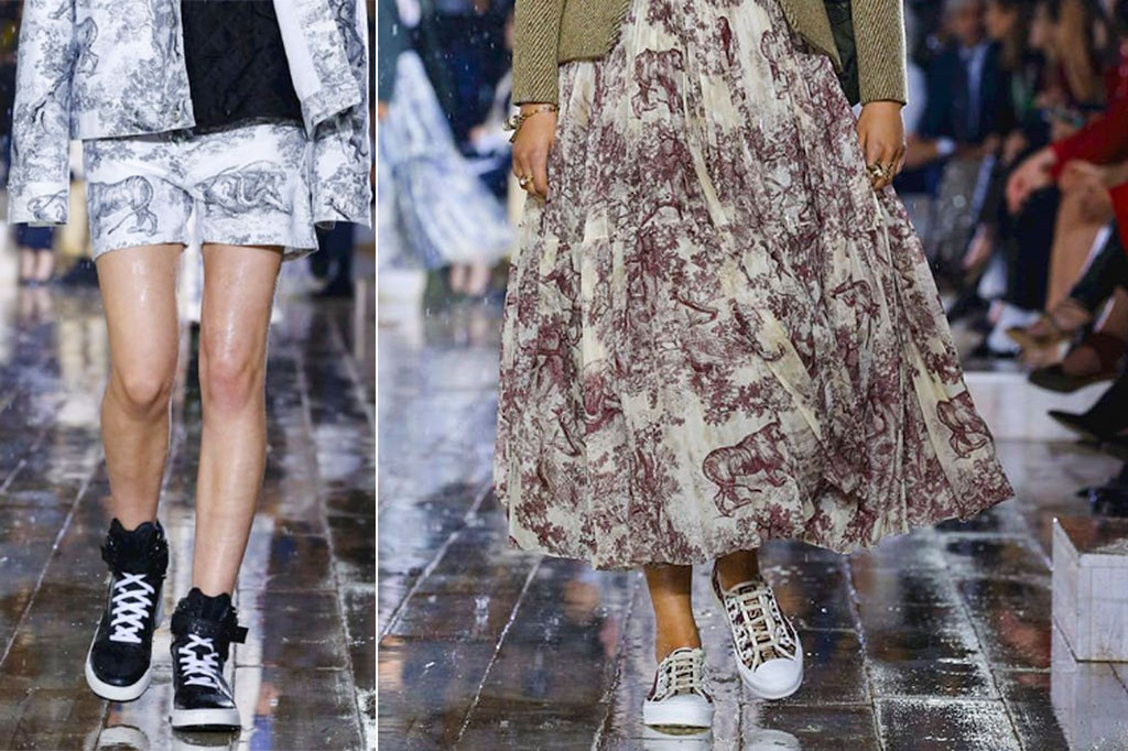 Coturnos e bota combinam em cheio com a temática da Dior, mas Maria Grazia ousou e também calçou suas cavaleiras com tênis tipo Converse, em tons metalizados e solado branco, e modelos de cano longo com tira de velcro amarrado o tornozelo – bem anos 1980!