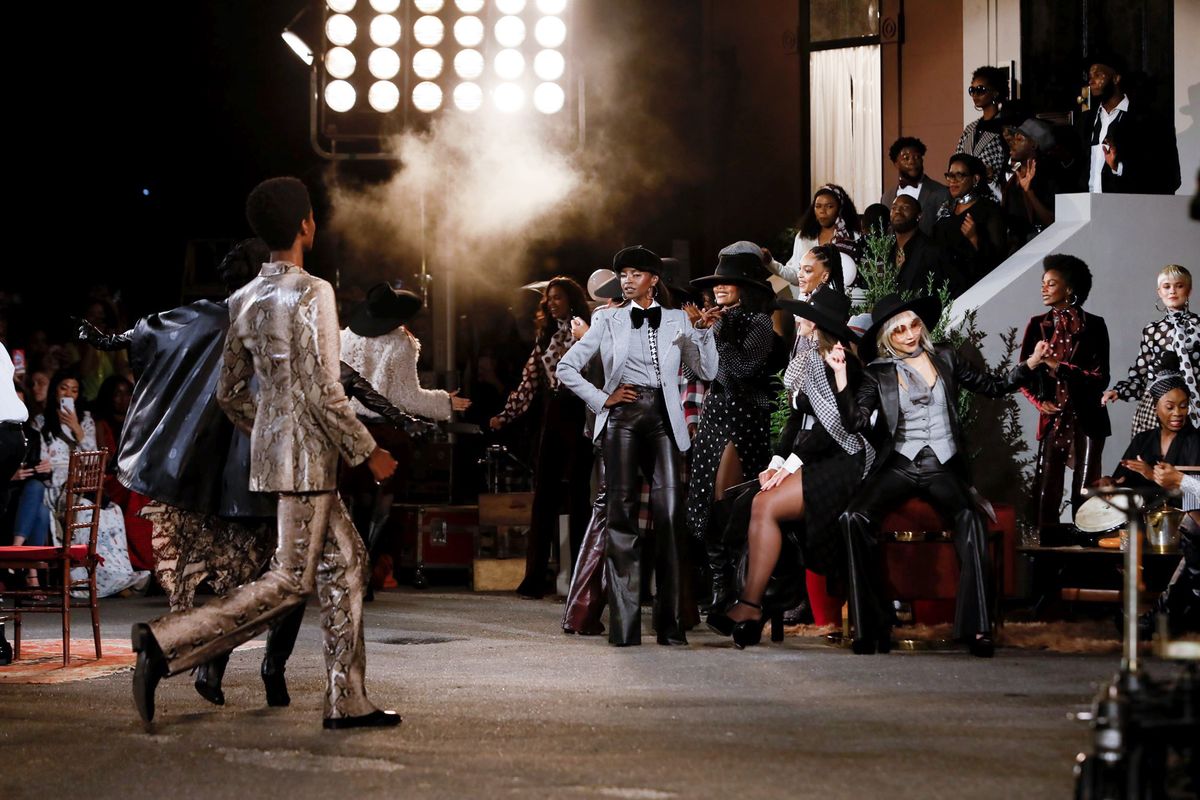 A inspiração da multiartista Zendaya vem dos anos 70 e pelas mulheres poderosas daquela época. Ela aposta em ternos e casacos. Veludo, poá, lurex e couro apareceram na passarela, que foi size inclusive. “Eu queria que as mulheres da minha família tivessem a chance de usar as minhas roupas. Queria que todas as pessoas se sentissem representadas”, declara a atriz.