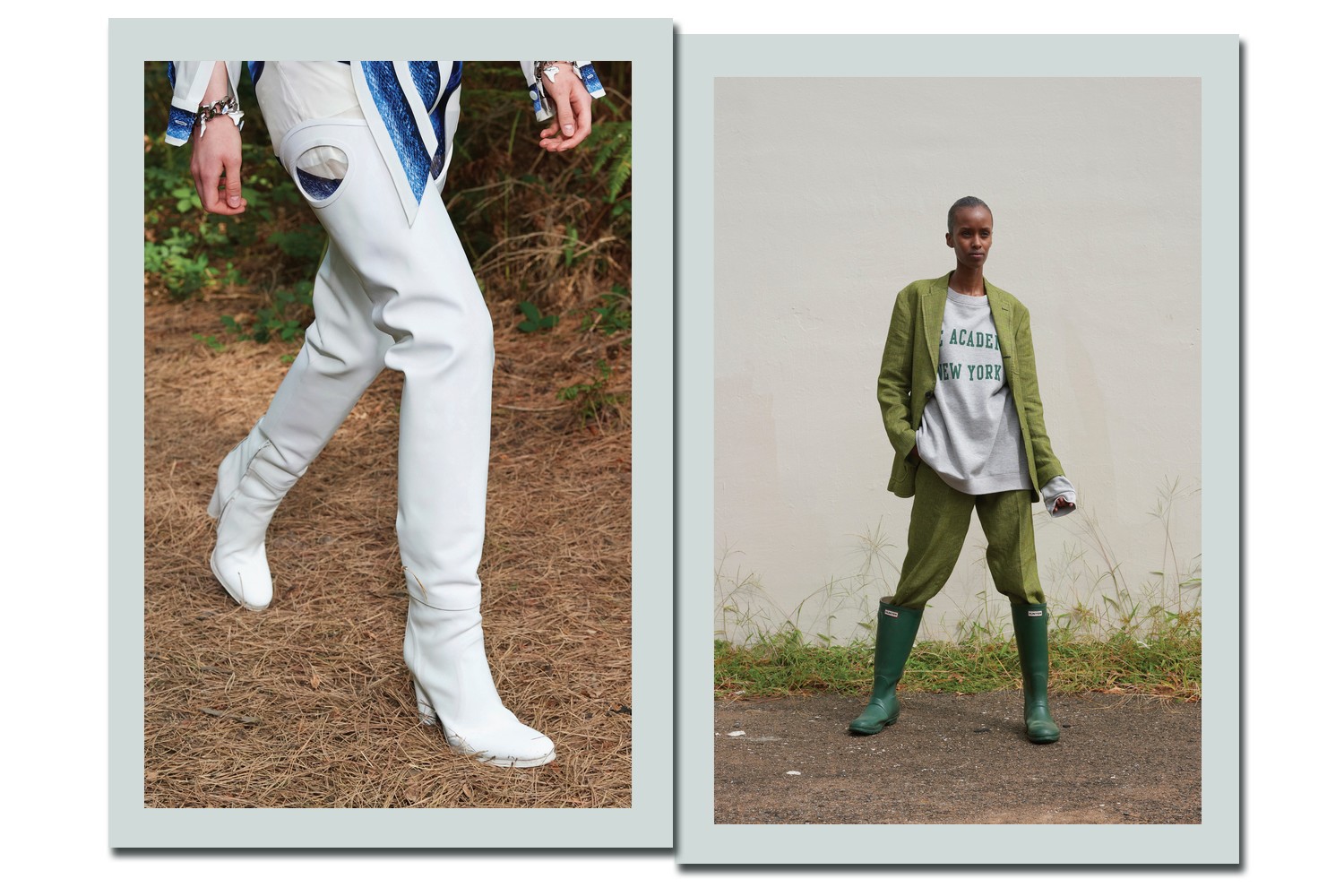 Botas altíssimas com cara de impermeáveis ou as indefectíveis galochas nos mostram que o contato com a natureza nunca sai de moda. Para se jogar sem medo nas chuvas de verão!