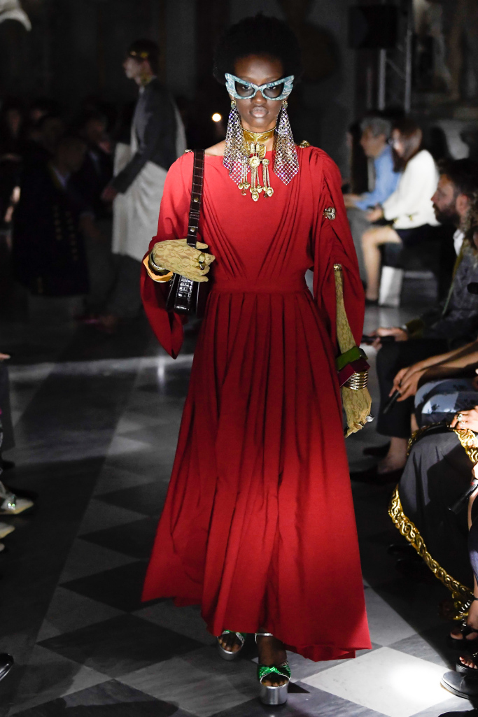 O desfile da Gucci toca em temas delicados, como a representação de gênero e o aborto. Em uma das peças, isso foi destacado pelo bordado de um útero.