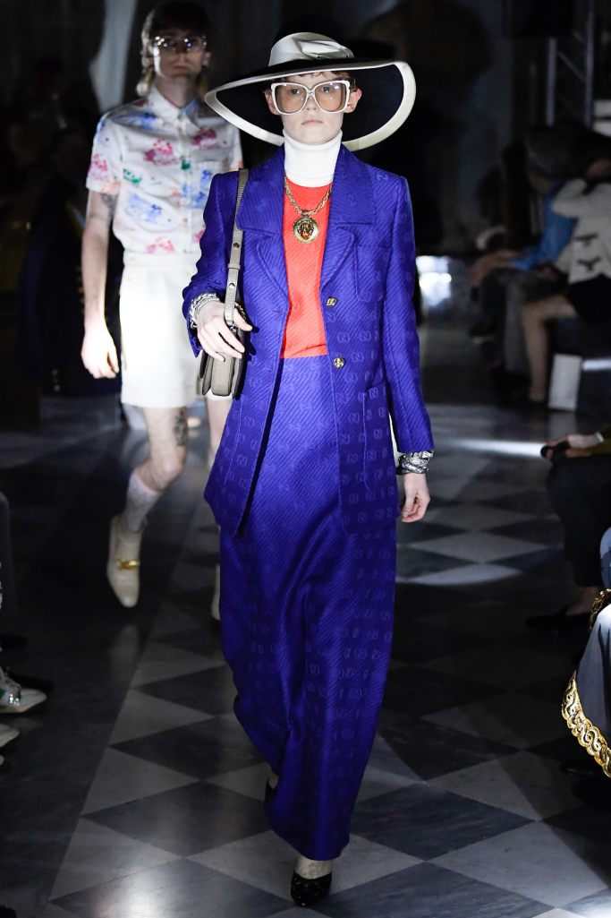 A alfaiataria faz parte do movimento da Gucci para quebrar esteriótipos do que é feminino e do que é masculino, por isso apareceu em modelagens mais soltas.