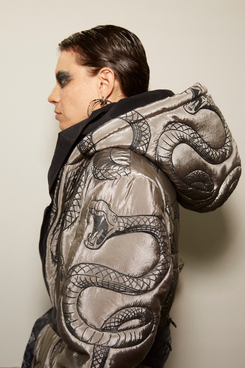 A estampa de cobra é um dos motivos que representam Lilith, personagem escolhido por Pimenta para representar sua coleção.