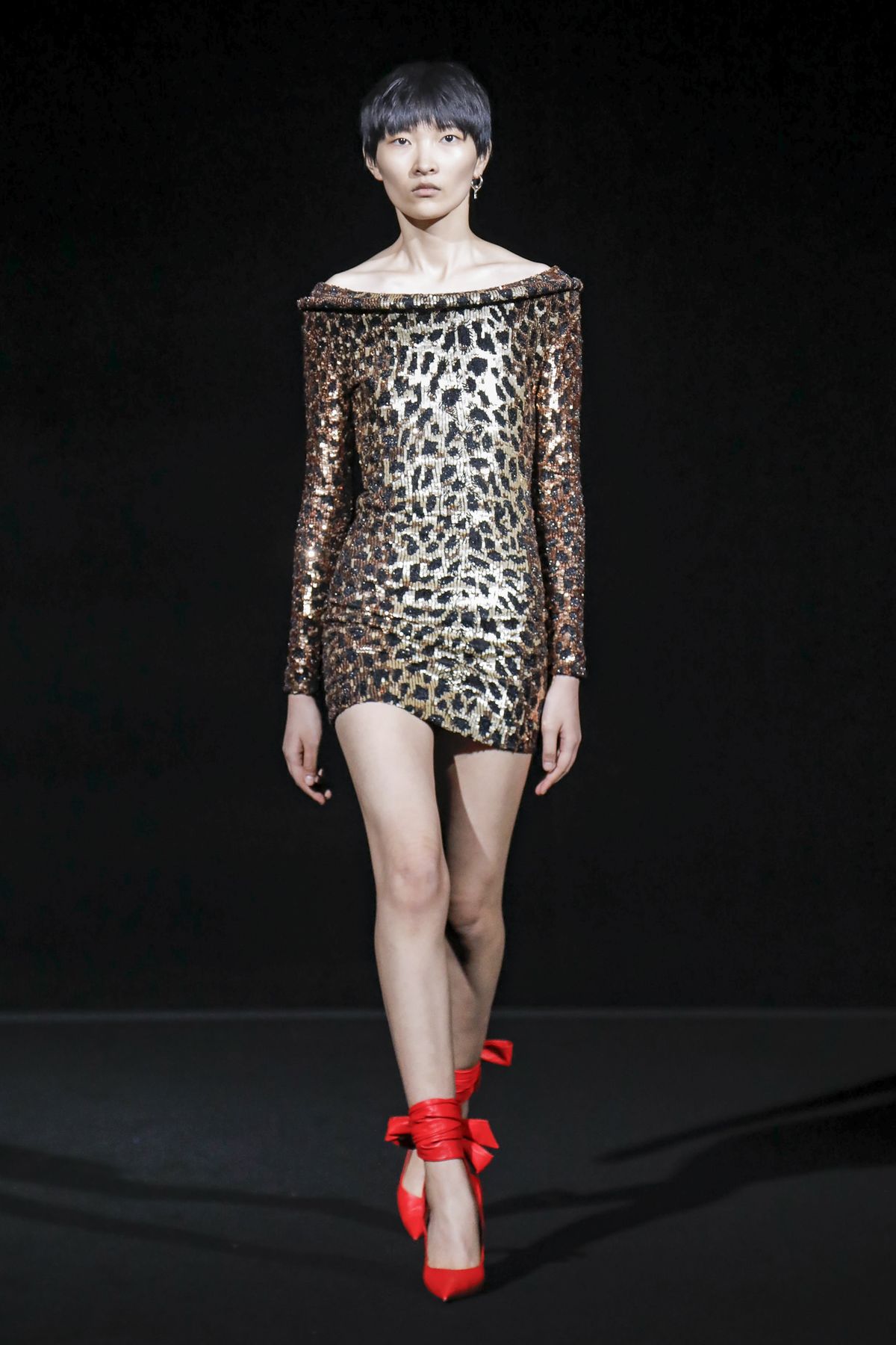 9. A onça apareceu em alguns detalhes da coleção e neste vestido curto com decote canoa.