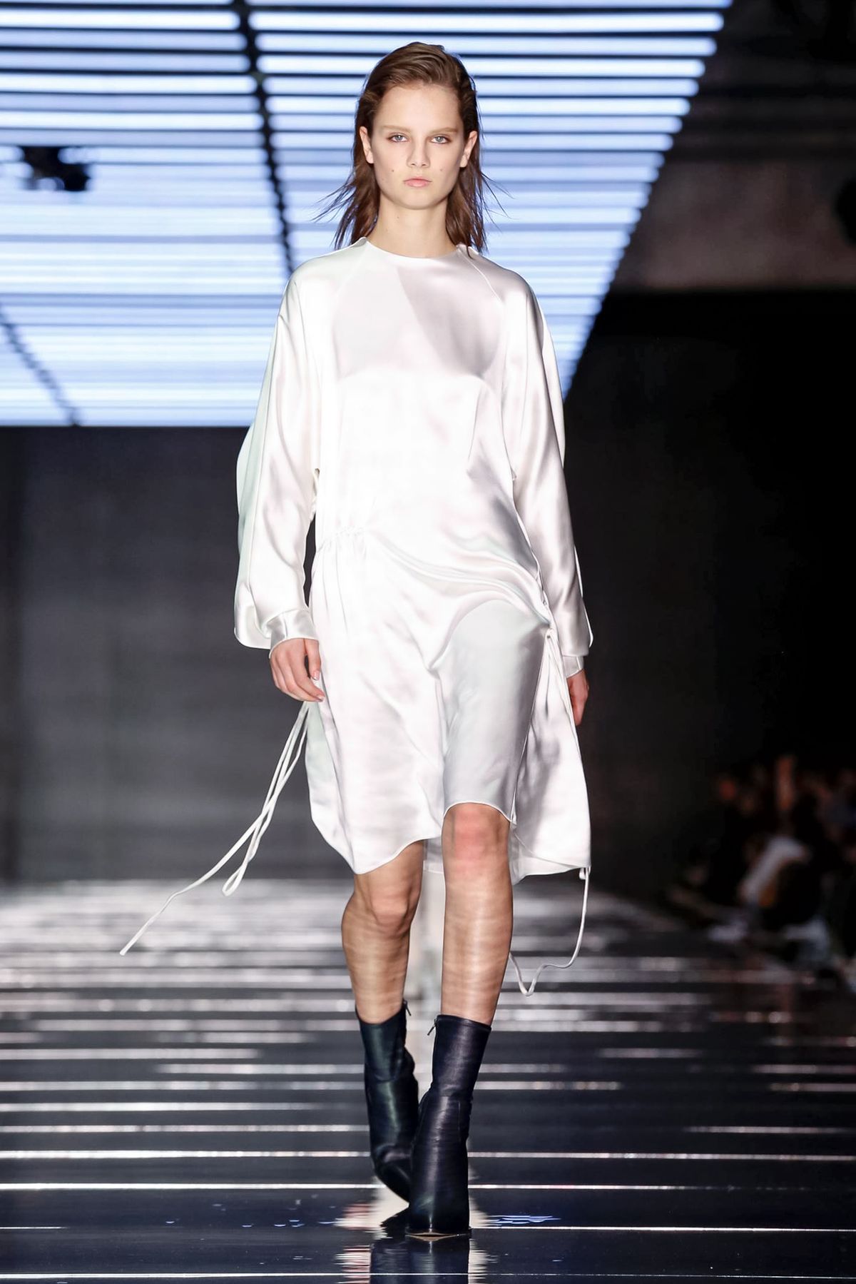 3. O modelo com drapeados assimétricos é pura informação de moda.