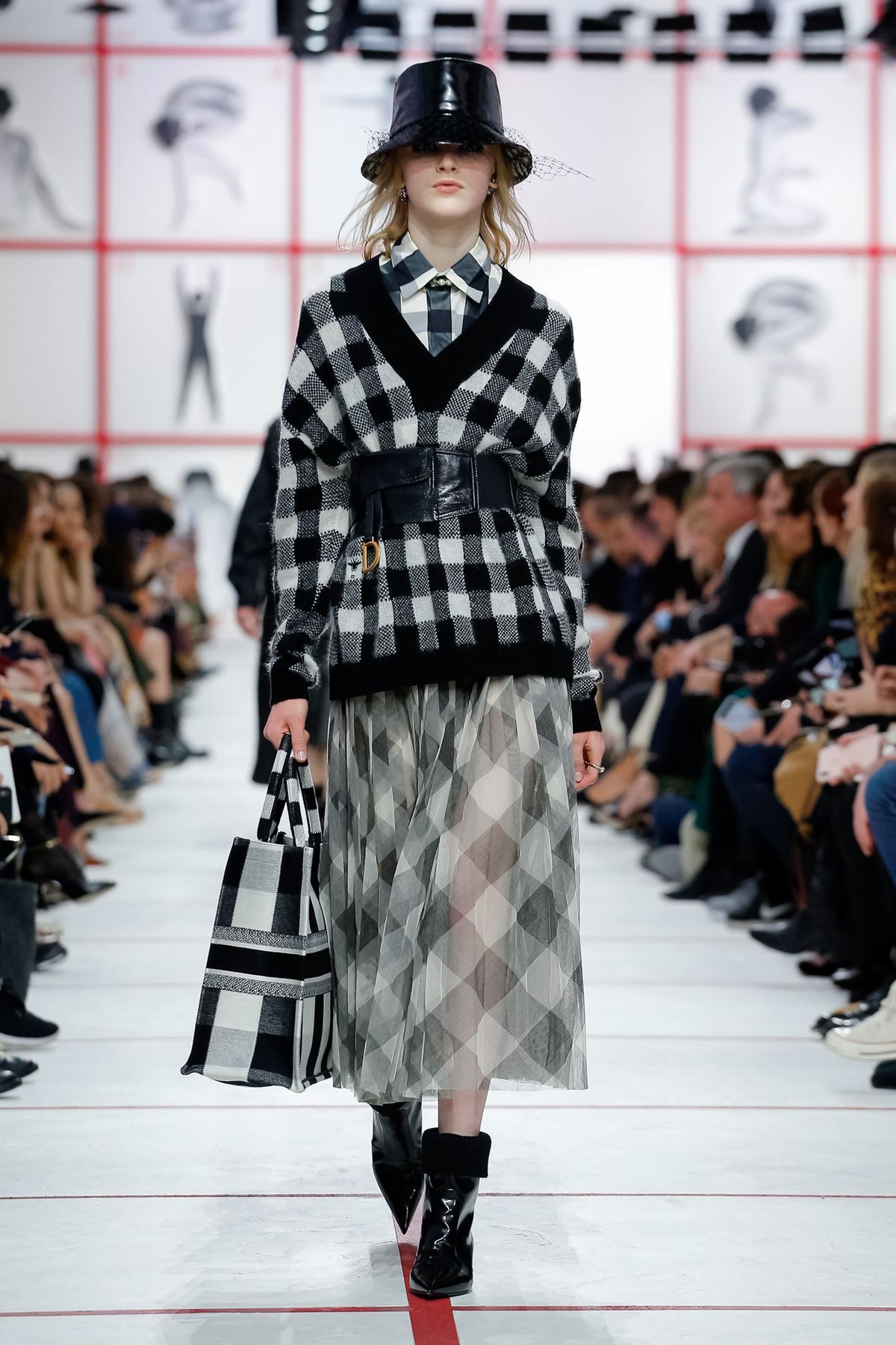 3. Maria Grazia Chiuri prova que é possível usar xadrez da cabeça aos pés. Com muito informação de moda o visual mistura os recursos fashion para construir o look.